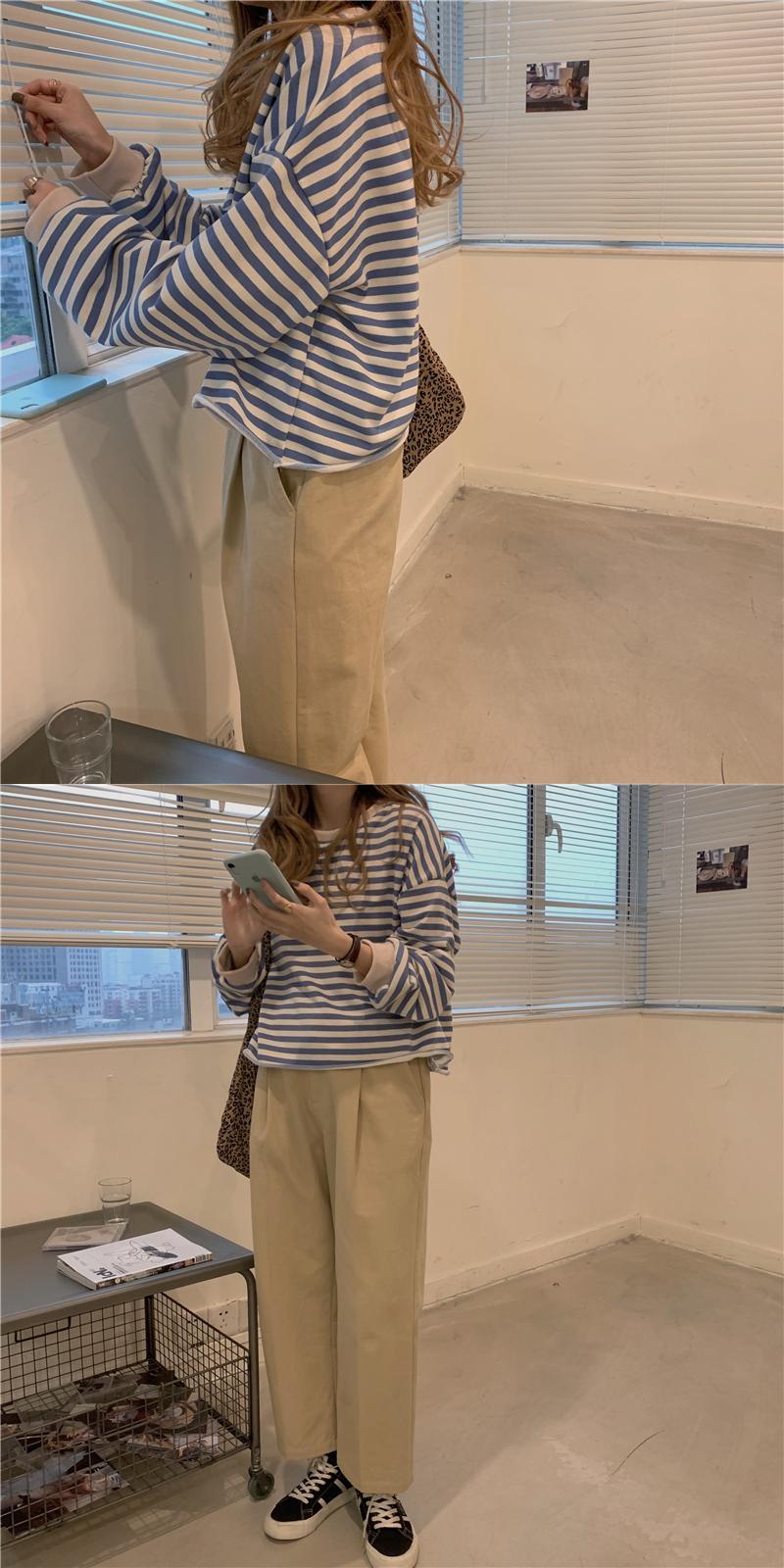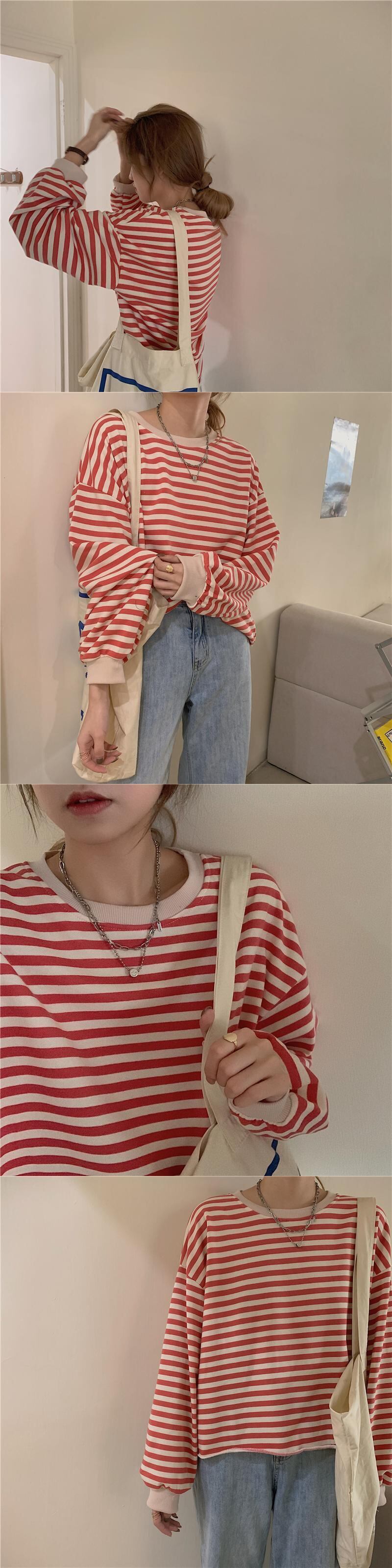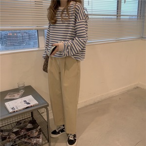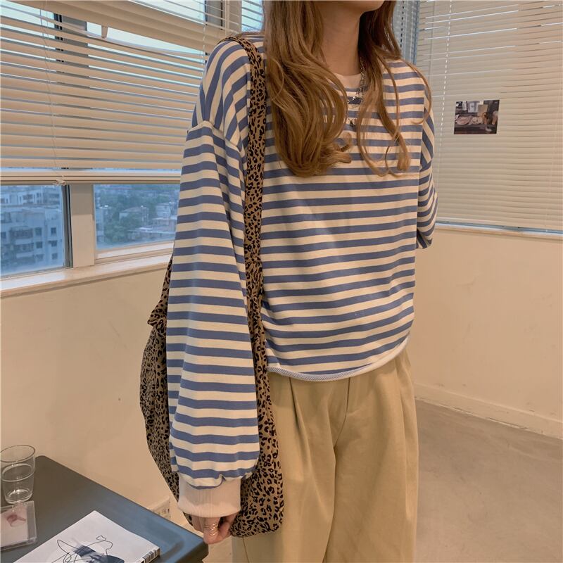 ラウンドネックプルオーバー トップス ストライプTシャツ レディースルーズ ロング オータム 秋物 ウィンター 冬物 Oネック クレセントシティ29344197931