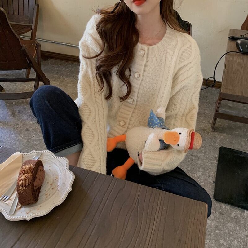 パターンニットカーディガンオータムウィンターラウンドネックルーズセーター コート ロング 秋物 冬物 Oネック クレセントシティ89031151253