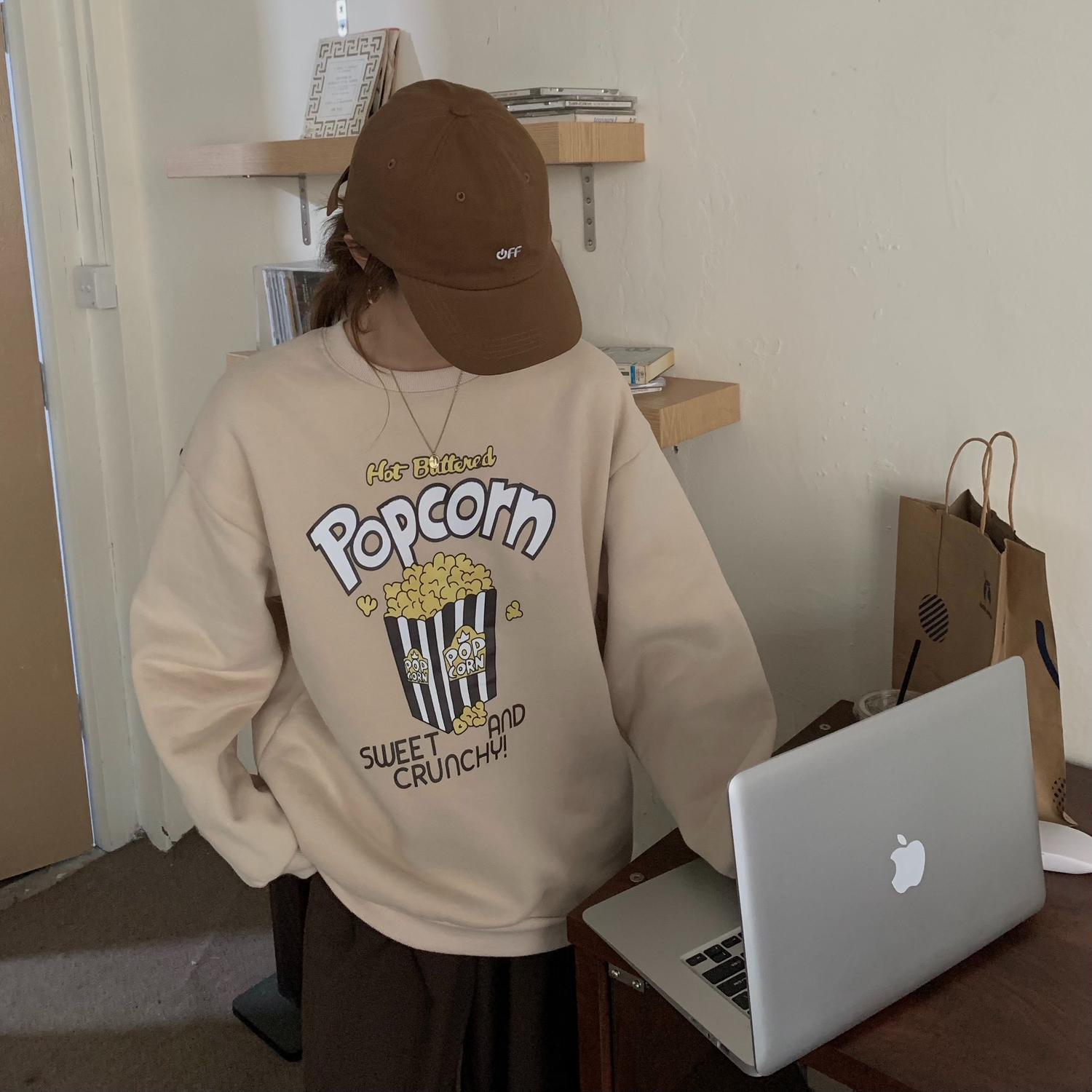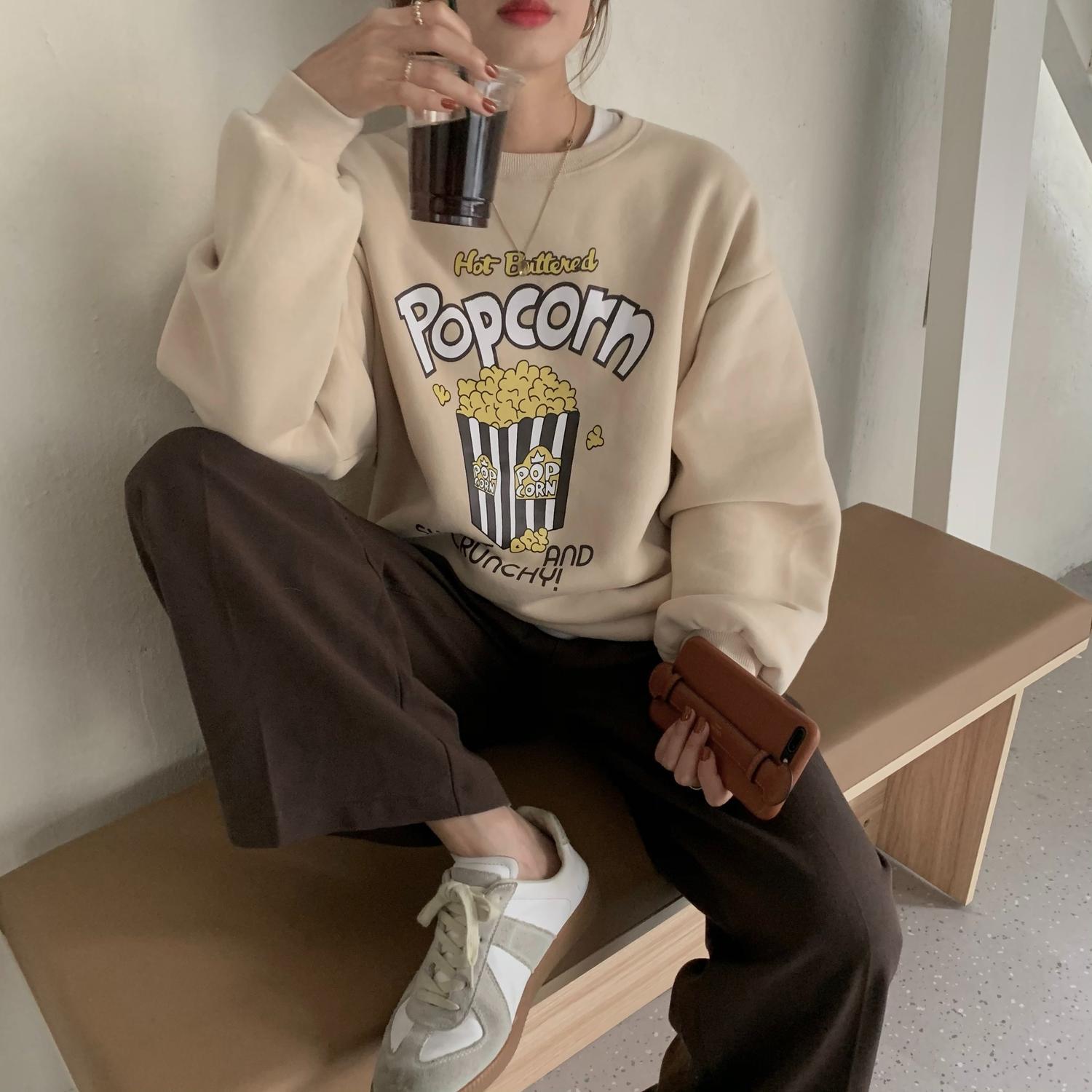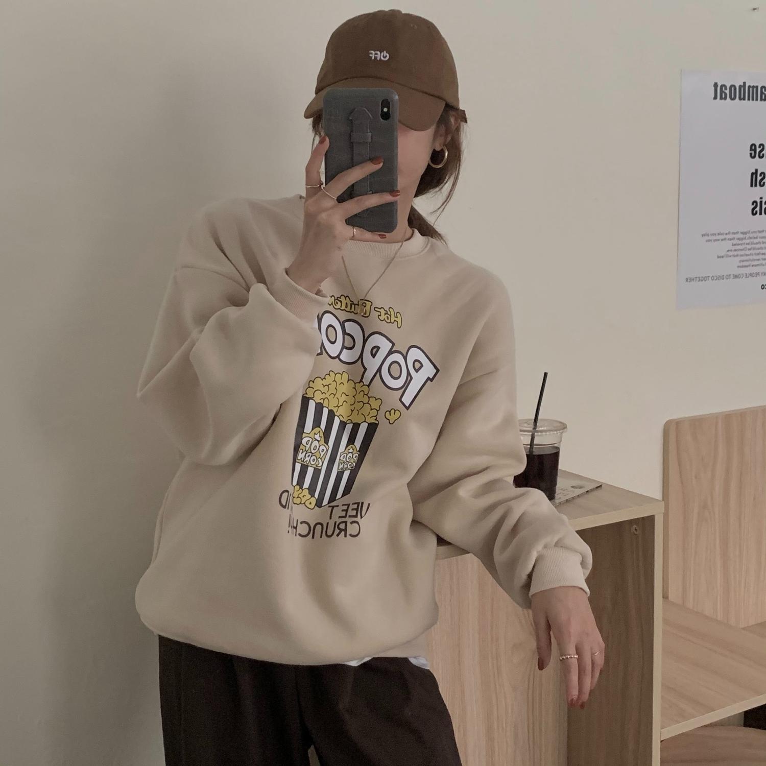 スタイルカジュアルプリントトップス オータムウィンターベルベットルーズラウンドネックセーター レディース 秋物 冬物 Oネック クレセントシティ47641119877