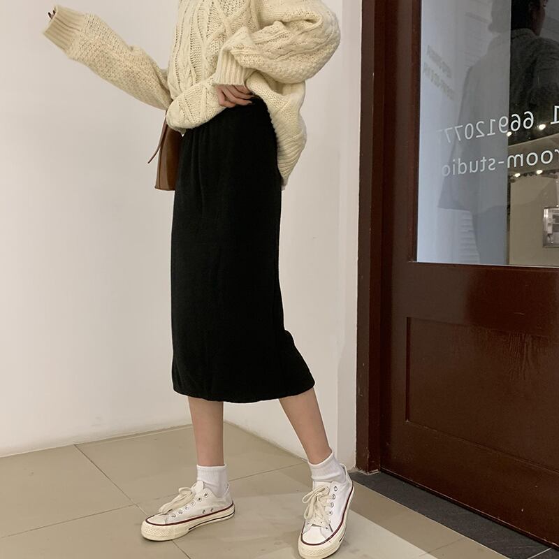 スカート オータムウィンタースタンダードハイウェスト薄手ルーズ レトロ 秋物 冬物 クレセントシティ92078482023