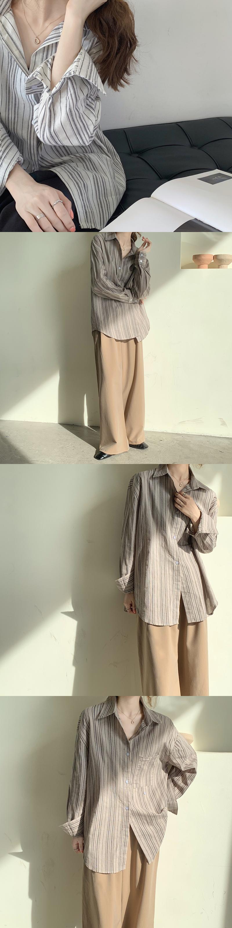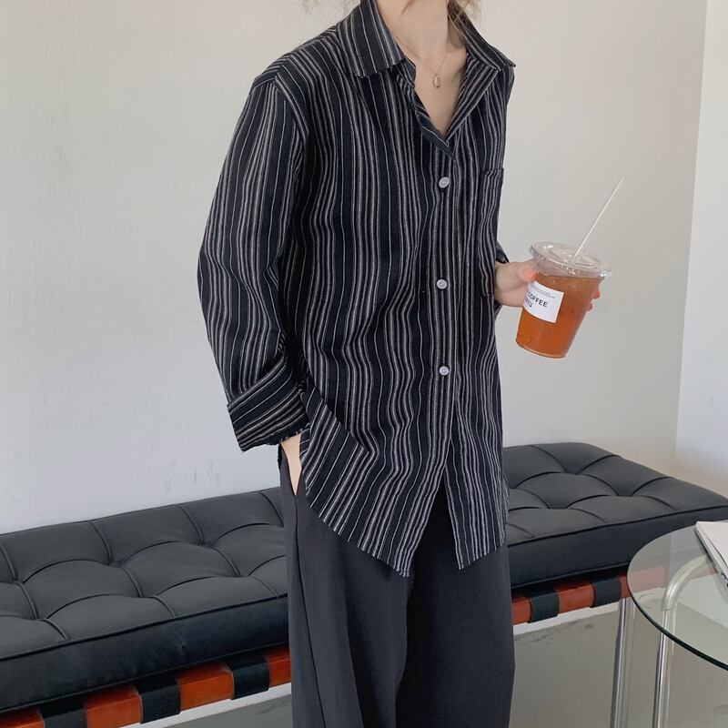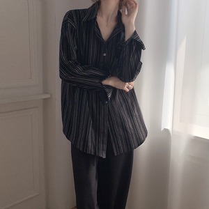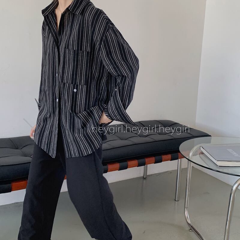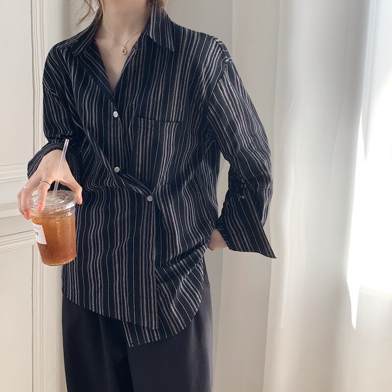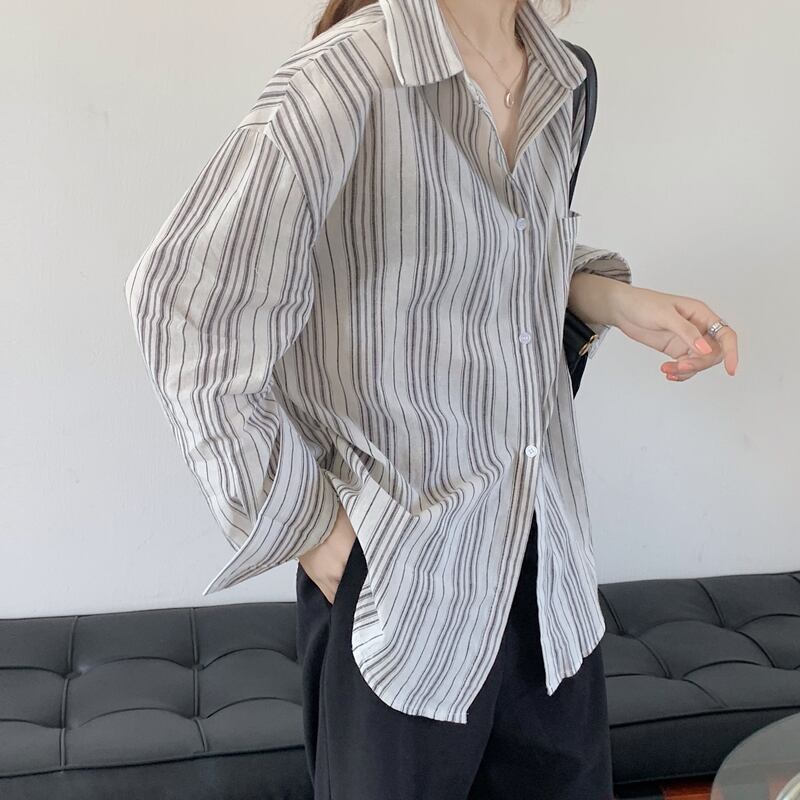 ストライプシャツ レディースオータムルーズスタイルロング長袖スリーブ 秋物 クレセントシティ57358937954