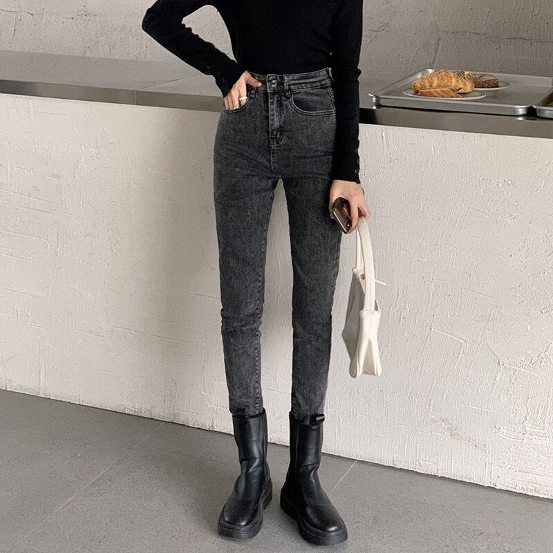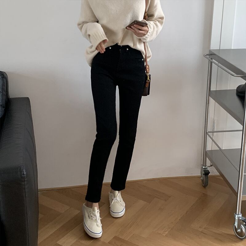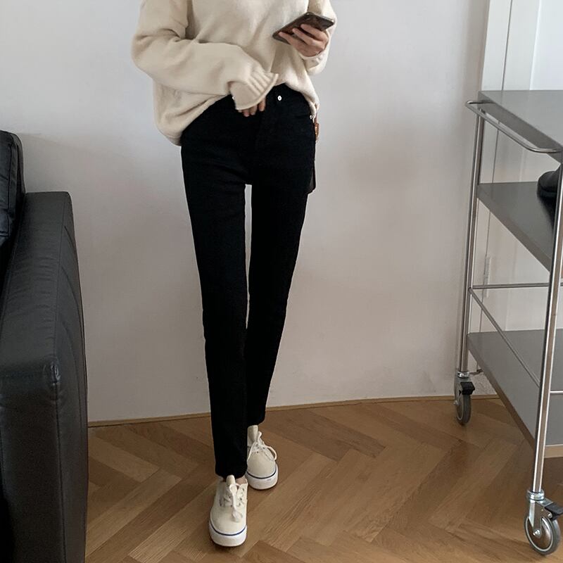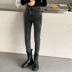 オータムウィンターハイウェストジーンズ ストレッチ薄手パンツ エラスティック 伸縮 秋物 冬物 クレセントシティ88380531644