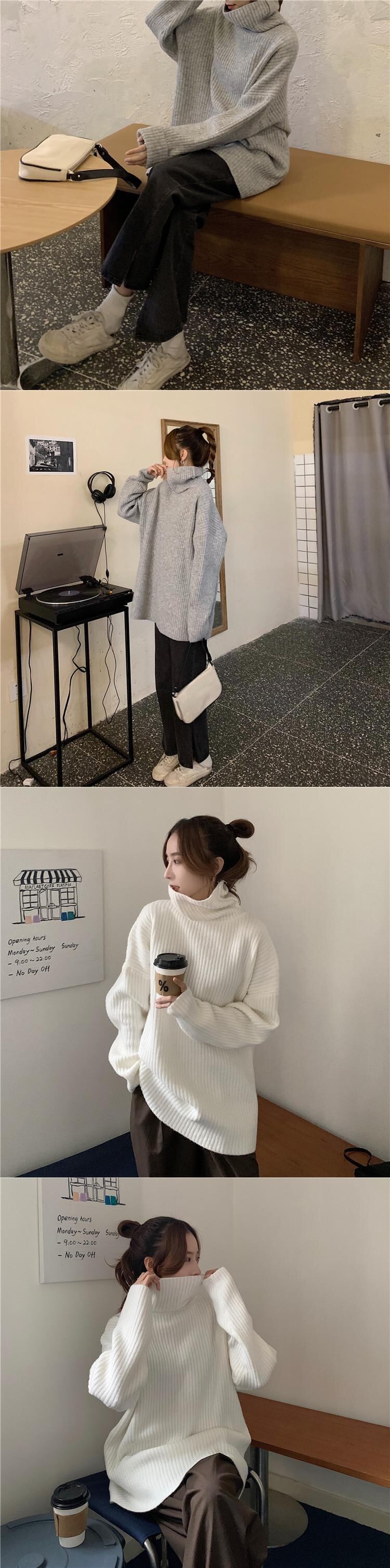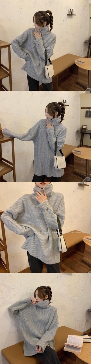 ロングホワイトセーター レディースオータムウィンタースタイルルーズニットトップス コート 長袖 秋物 冬物 クレセントシティ78751153877