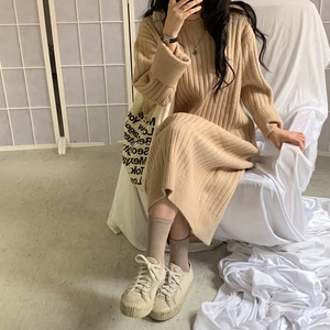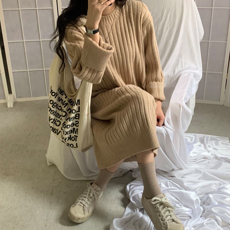 ロングストライプセーター レディースルーズオータムウィンターソリッド カラースカート 秋物 冬物 ソリッドカラー クレセントシティ33568746800