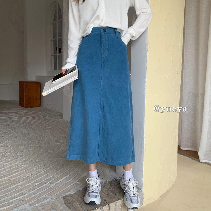 コーデュロイスタンダードスカート オータムウィンタースタイルウェスト薄手 レトロ 秋物 冬物 クレセントシティ16964764198