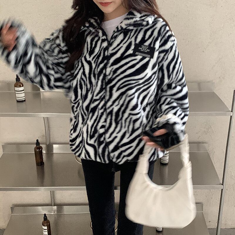 プリント柄ジャケット ウィンタースタイルルーズトップス 冬物 クレセントシティ14418274184