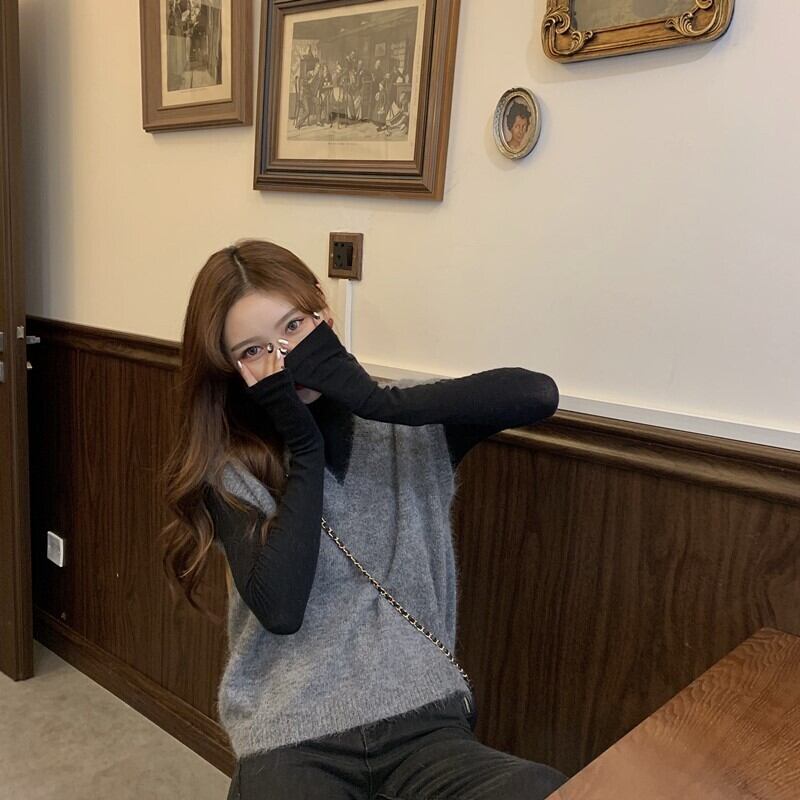 色:グレーのベスト,米あんずベスト,ホワイトボトミングシャツ,黒底シャツ