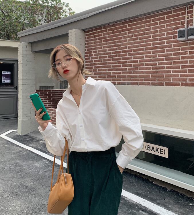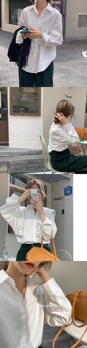 ホワイトシャツ オータムカジュアルルーズ ロング 秋物 クレセントシティ36713275794