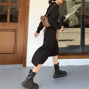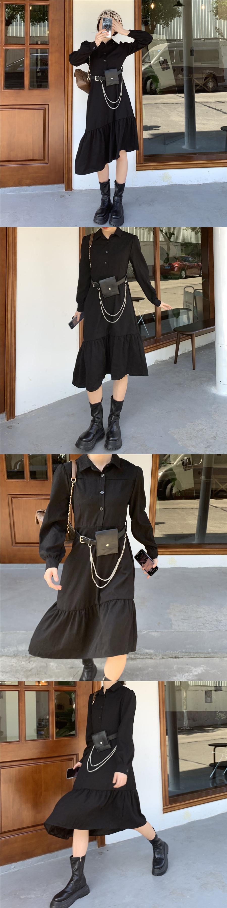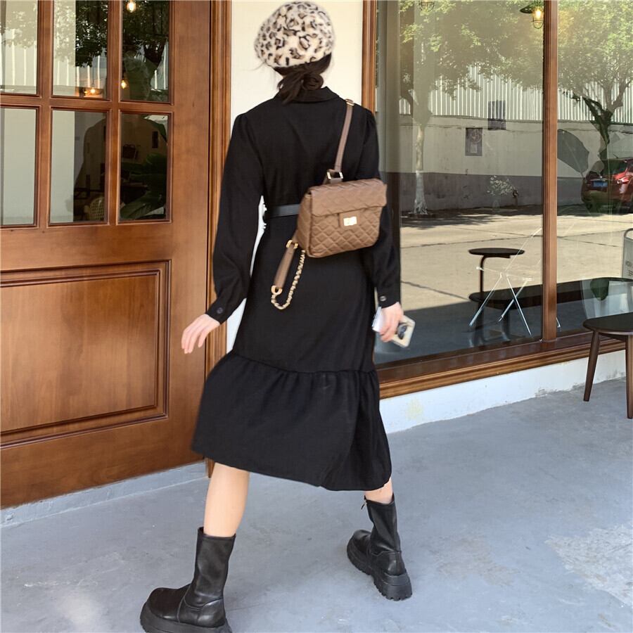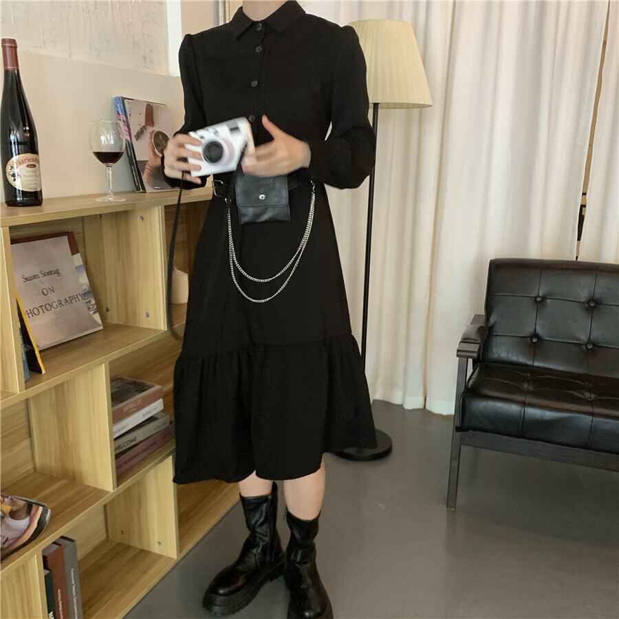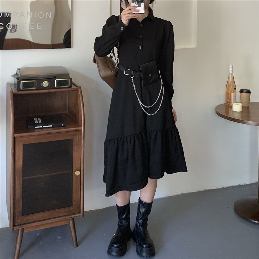 ドレス オータムスタイルハイウェストウェストルーズAラインブラックベルト 秋物 ハーネス クレセントシティ48236091833