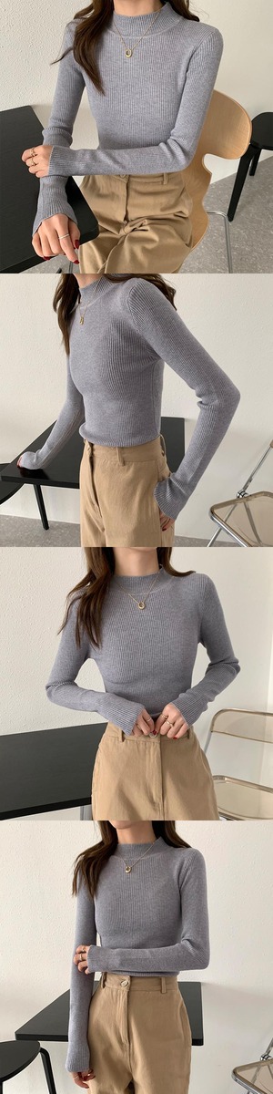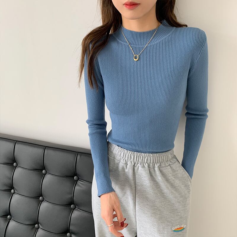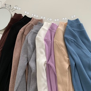 カラーシャツ オータムウィンタースリムソリッド ニットトップス ロング 秋物 冬物 ソリッドカラー クレセントシティ98674508949