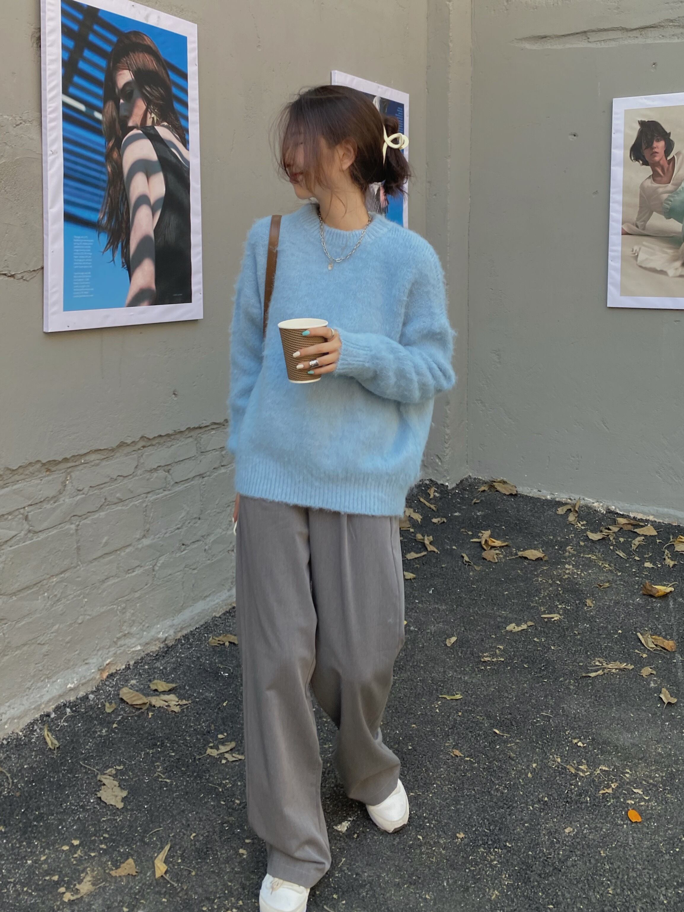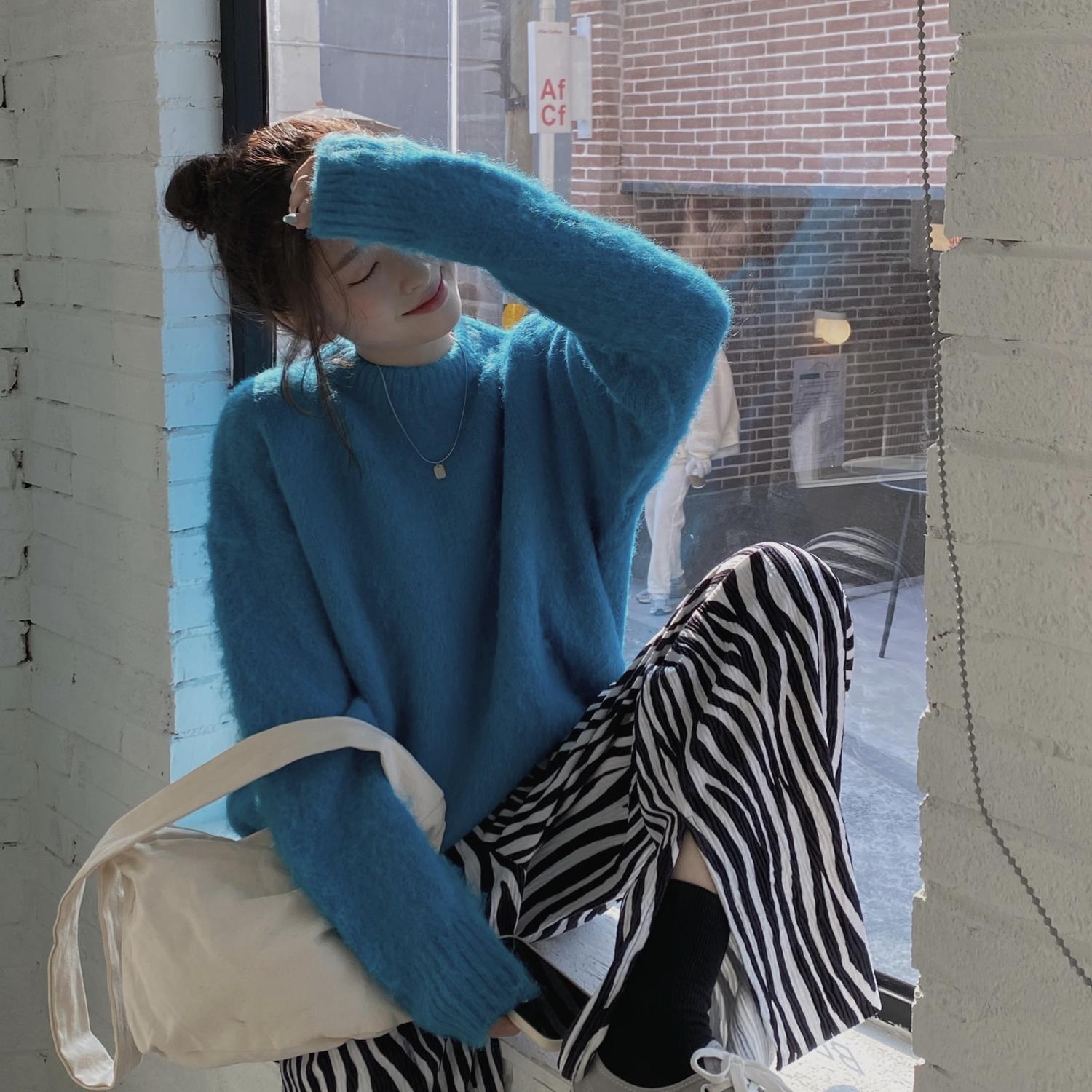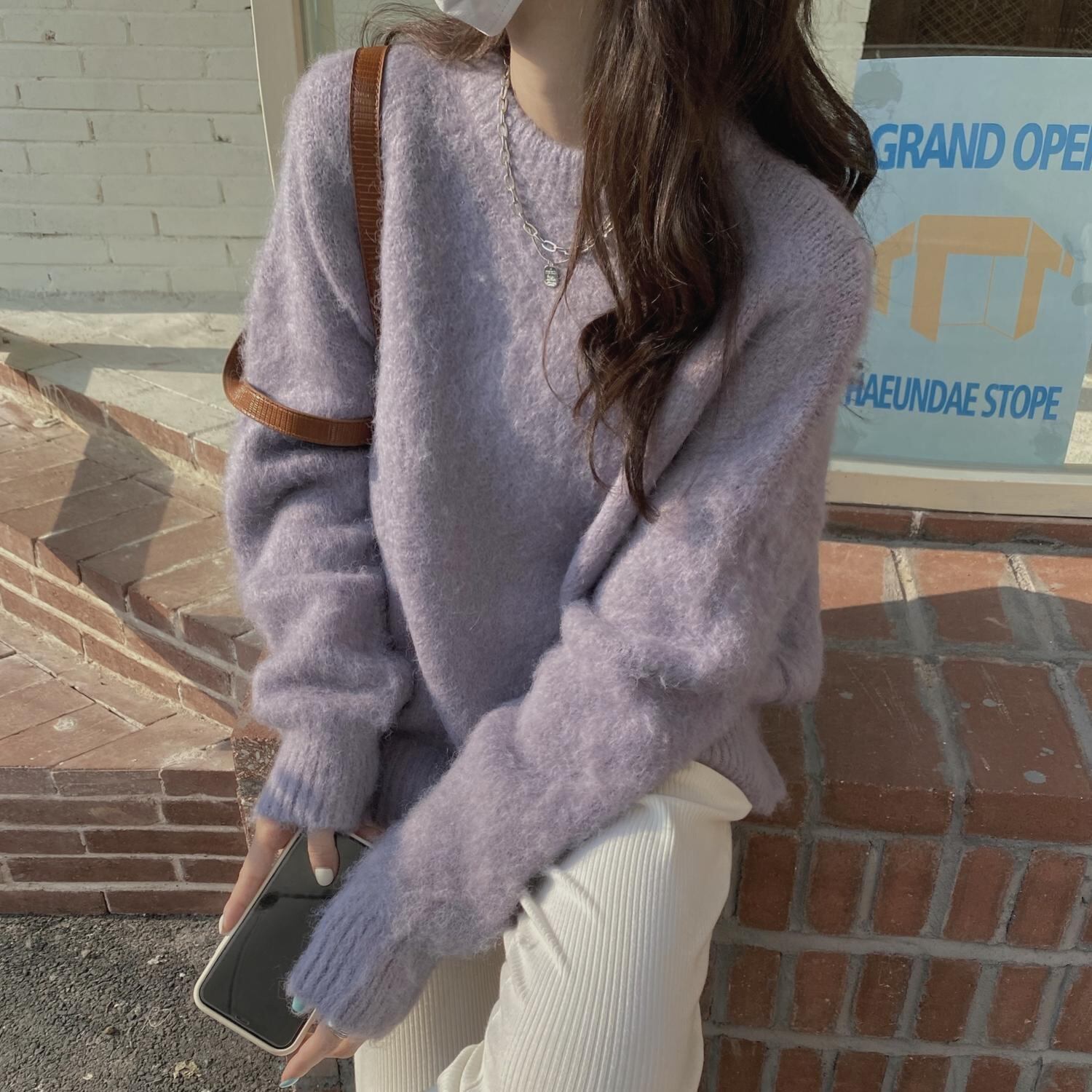 カラーセーター レディースルーズオータムウィンタースタイルラウンドネックニットトップス 秋物 冬物 Oネック クレセントシティ89317290585