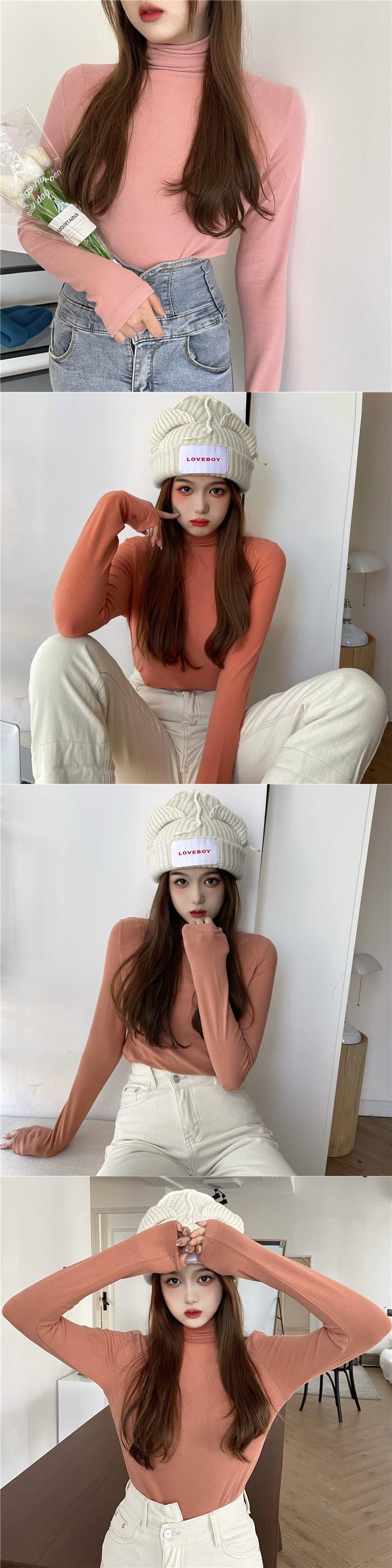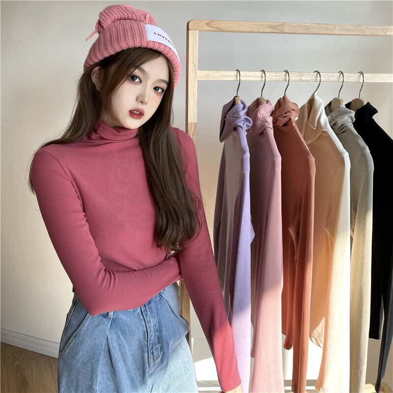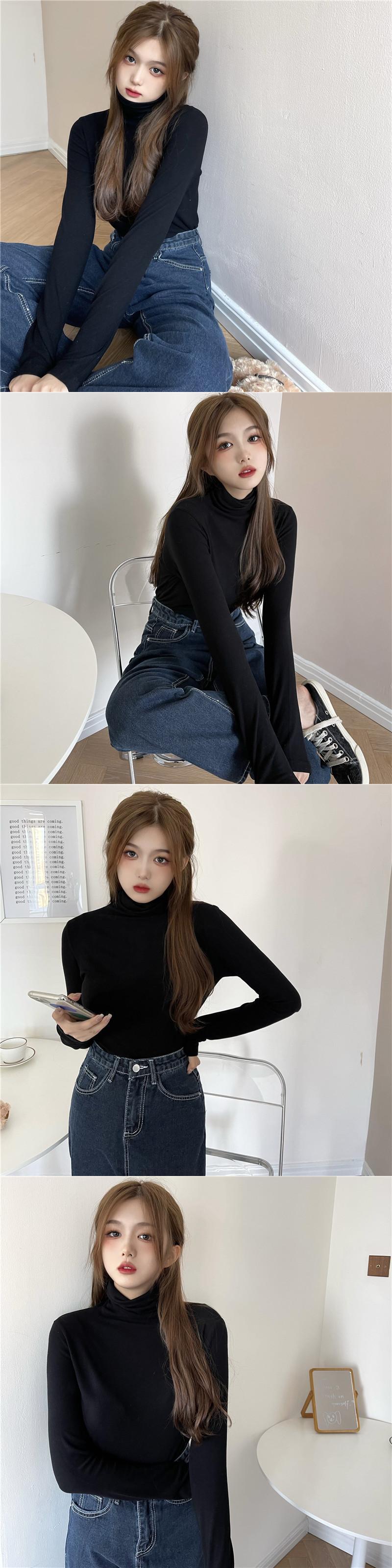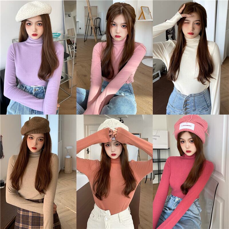 ホワイトシャツ オータムウィンタースリム薄手カラーソリッド Tシャツ ロング 秋物 冬物 ソリッドカラー クレセントシティ38148429783