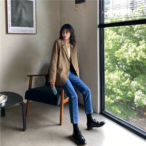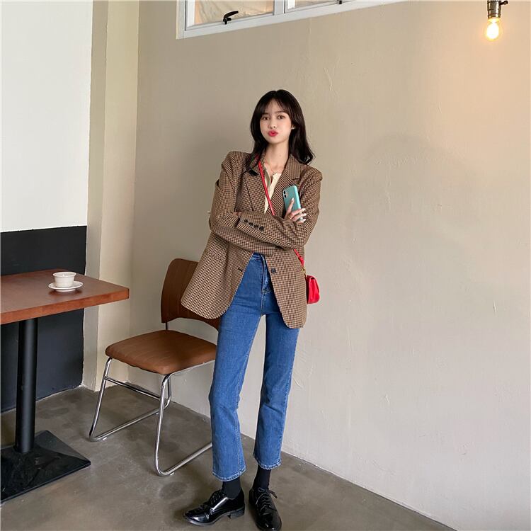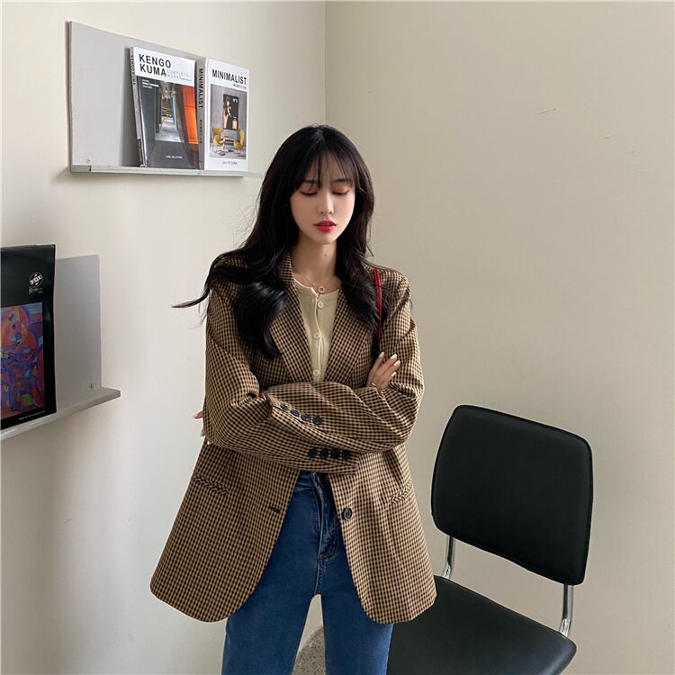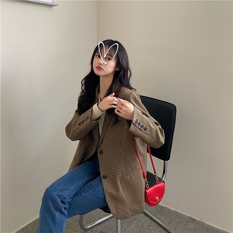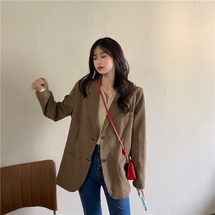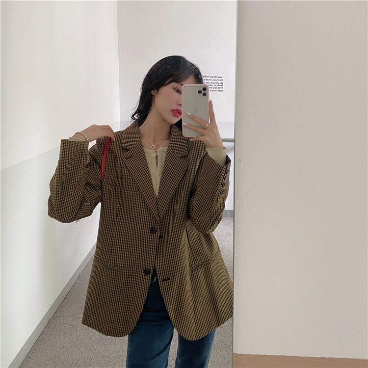 格子柄ジャケット レディースルーズオータムスタイルスタンダードカジュアル レトロ 秋物 クレセントシティ79623114963