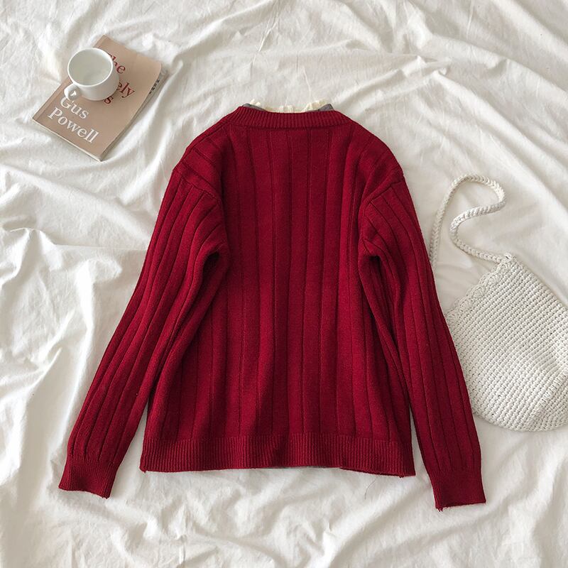 ニットカーディガンオータムラウンドネックルーズセーター ジャケット 秋物 Oネック クレセントシティ87634481000