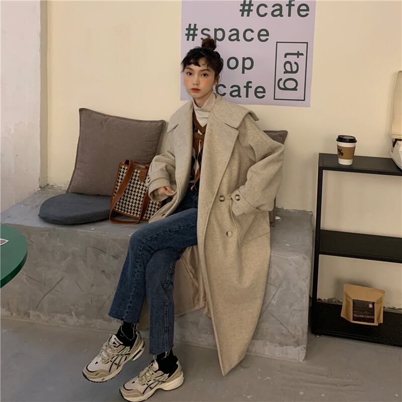 オータムウィンターロングコート スタイルダブルブレストレディースルーズ 秋物 冬物 クレセントシティ4293024741