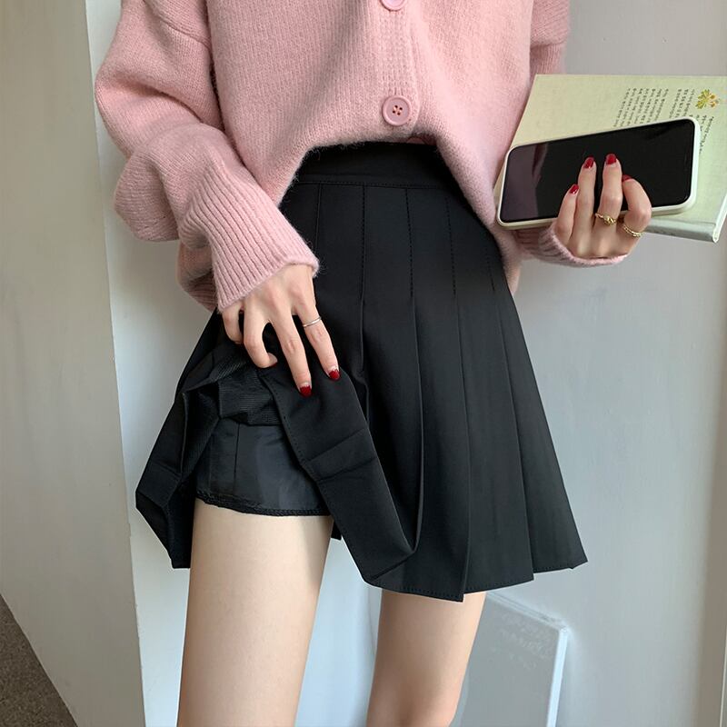 プリーツスカート オータムウィンターハイウェストウェストスリムAライン 秋物 冬物 クレセントシティ91878839016