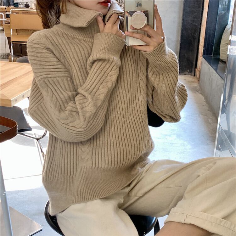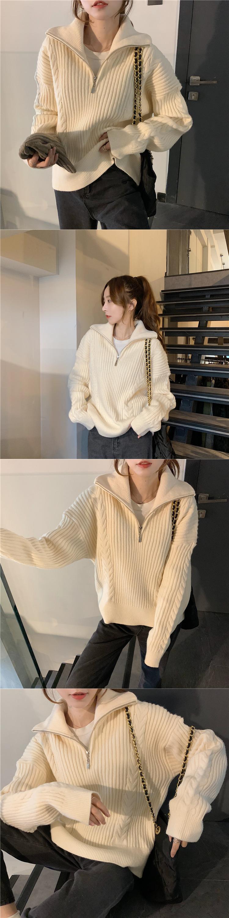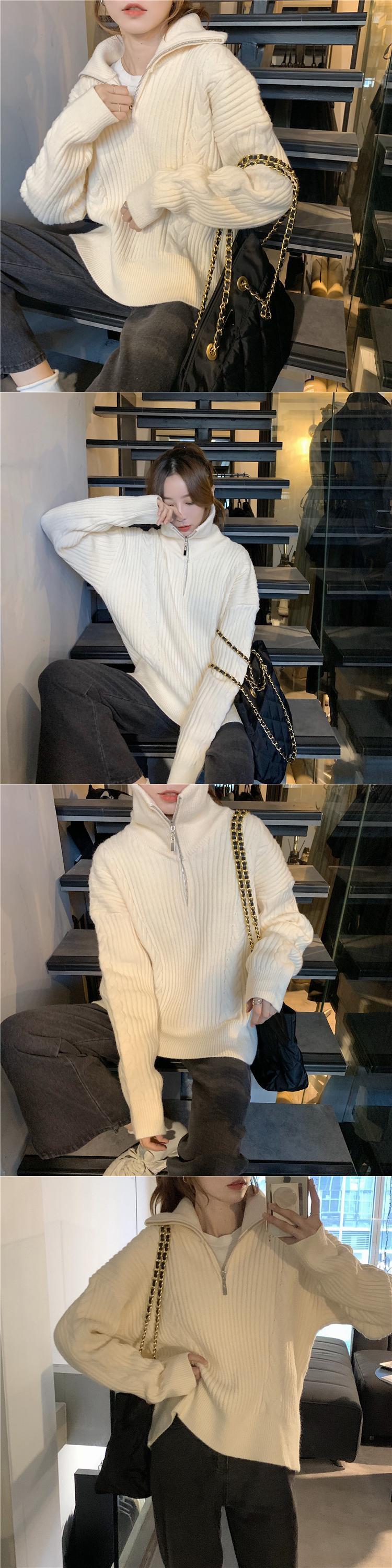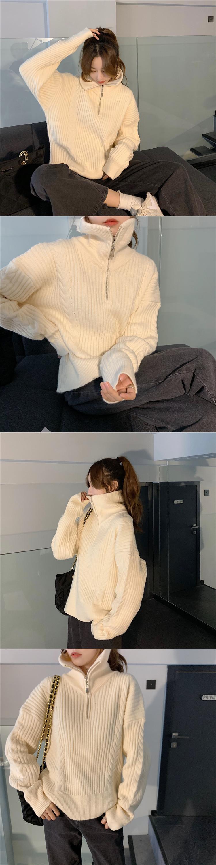 セーター レディースルーズオータムウィンタージッパー長袖スリーブニットトップス ロング 秋物 冬物 クレセントシティ13706475099