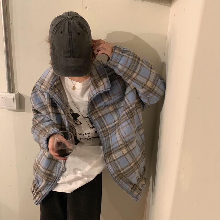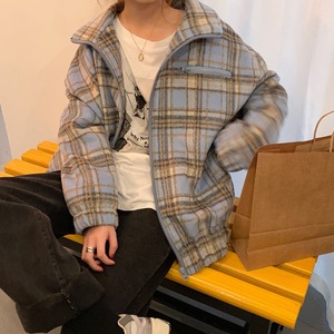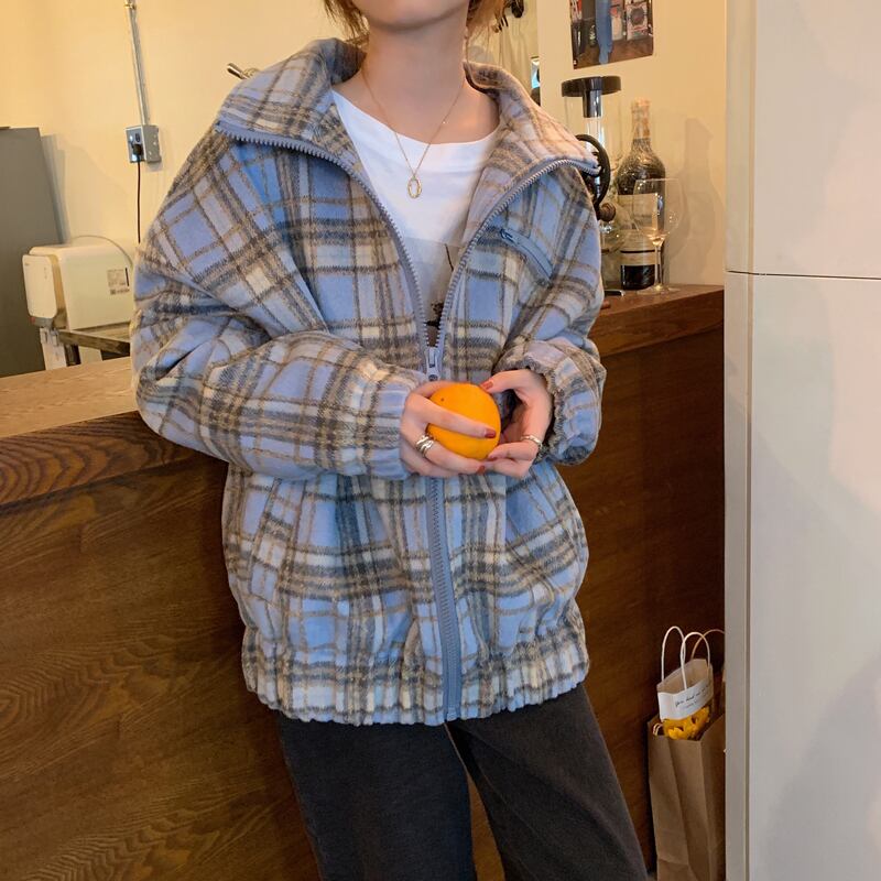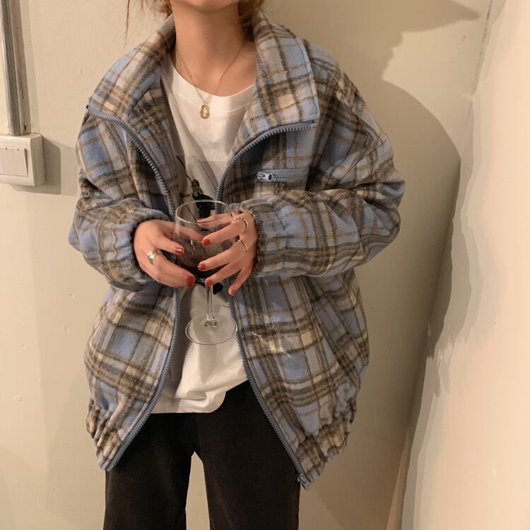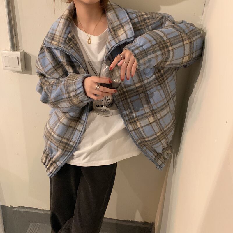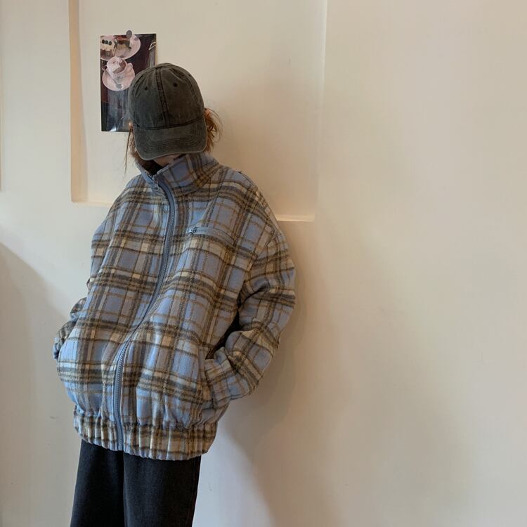 オータムウィンタースタンダード格子柄トップス ジャケット ルーズ レトロ 秋物 冬物 クレセントシティ82099765968