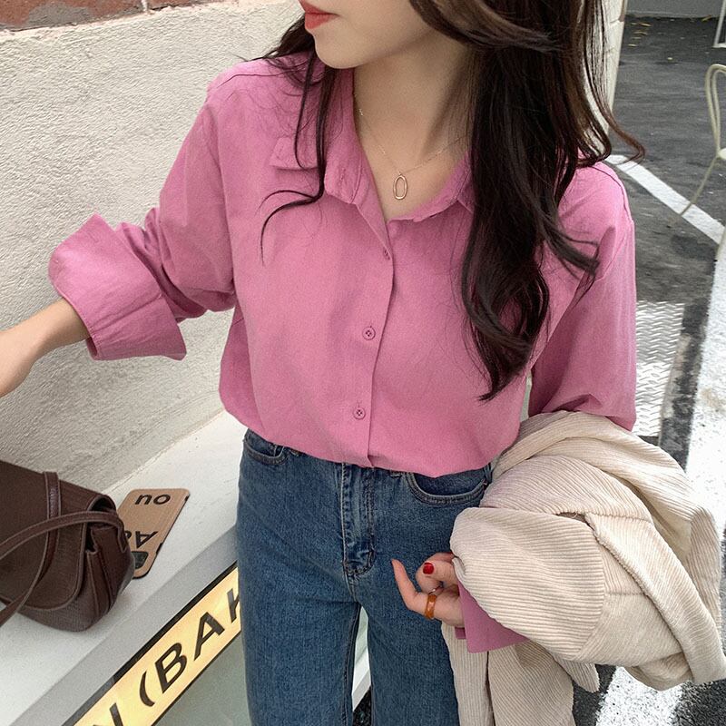 シャツ オータムスタイルルーズカジュアル レッド 秋物 クレセントシティ2092329431