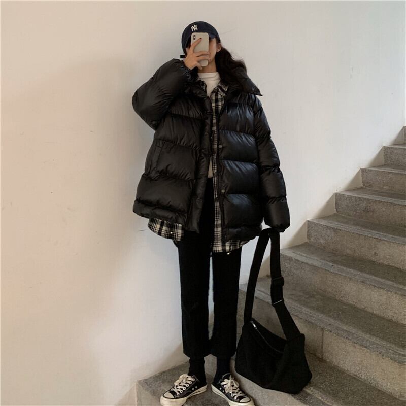 オータムウィンターブラックジャケット ルーズレディース コットン 秋物 冬物 クレセントシティ36357959927
