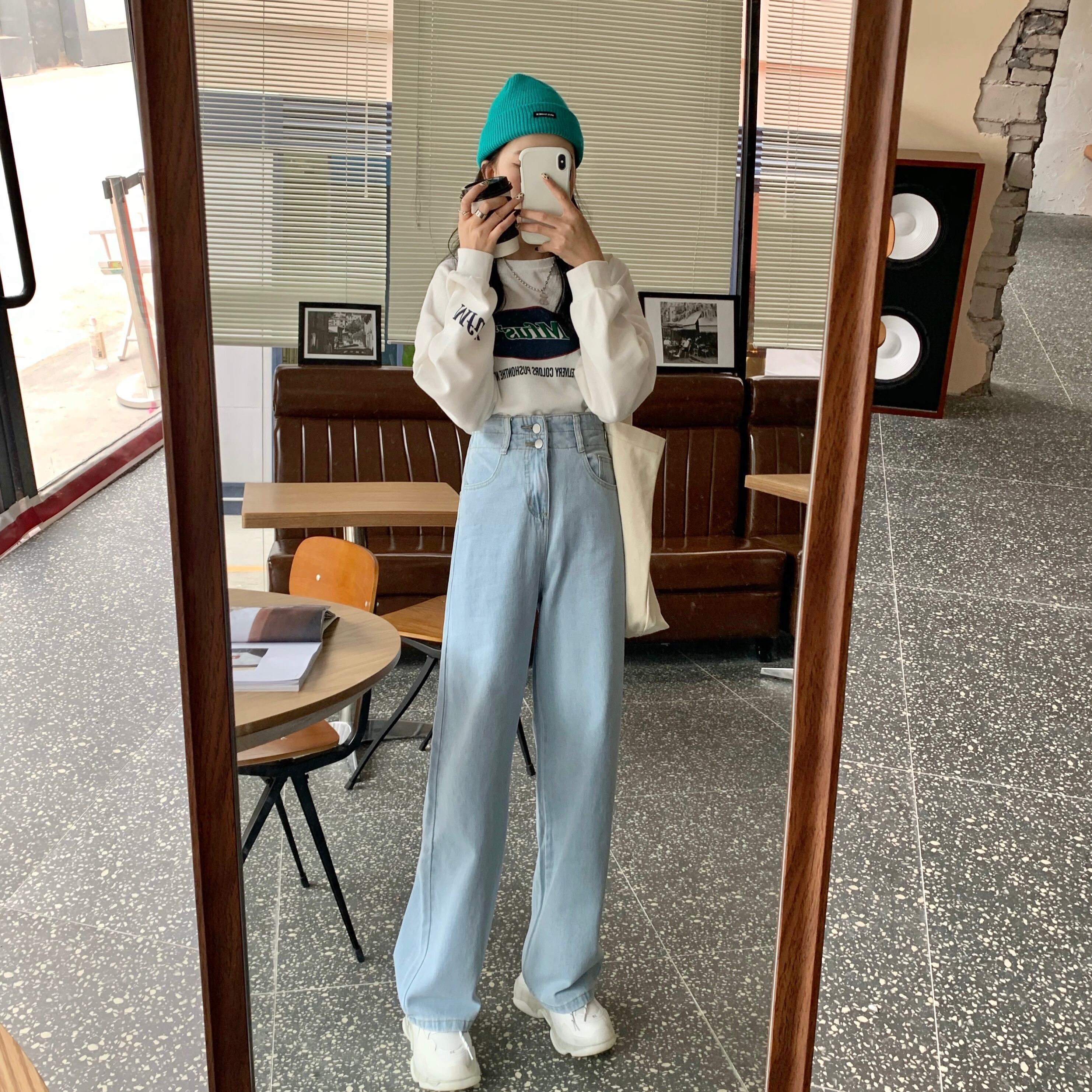 ブルーハイウェストウェストジーンズ レディースストレッチルーズワイドレッグパンツ エラスティック 伸縮 オータム 秋物 ウィンター 冬物 ワイドパンツ クレセントシティ84248656950