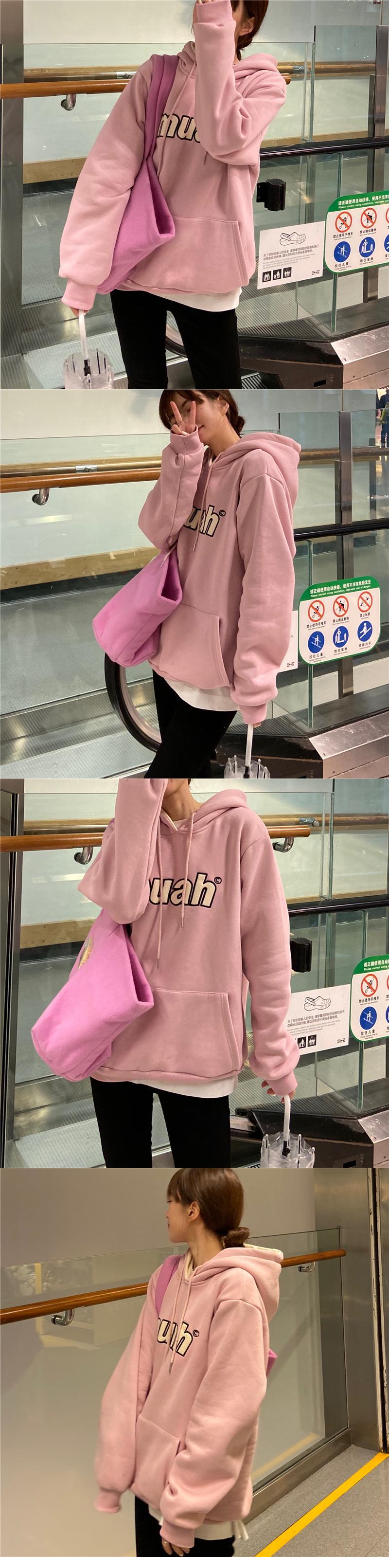 フードセーター レディーススタイルルーズポケットトップス ロング レッド 刺繍 オータム 秋物 ウィンター 冬物 クレセントシティ8652139988