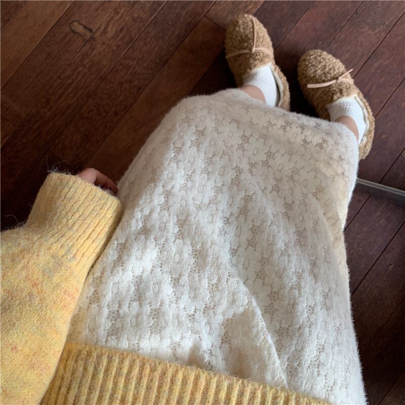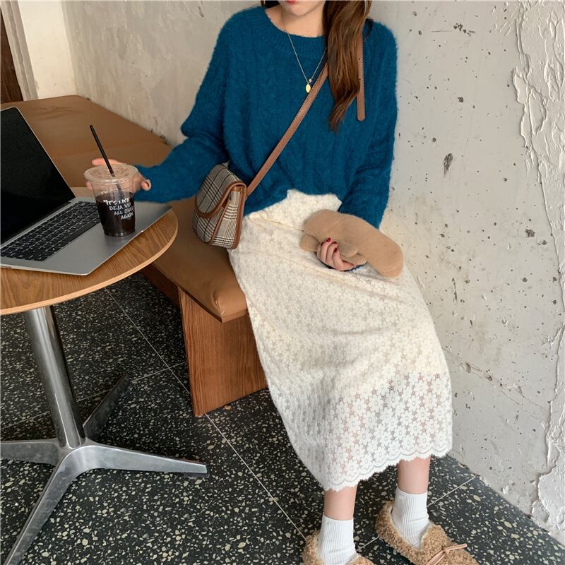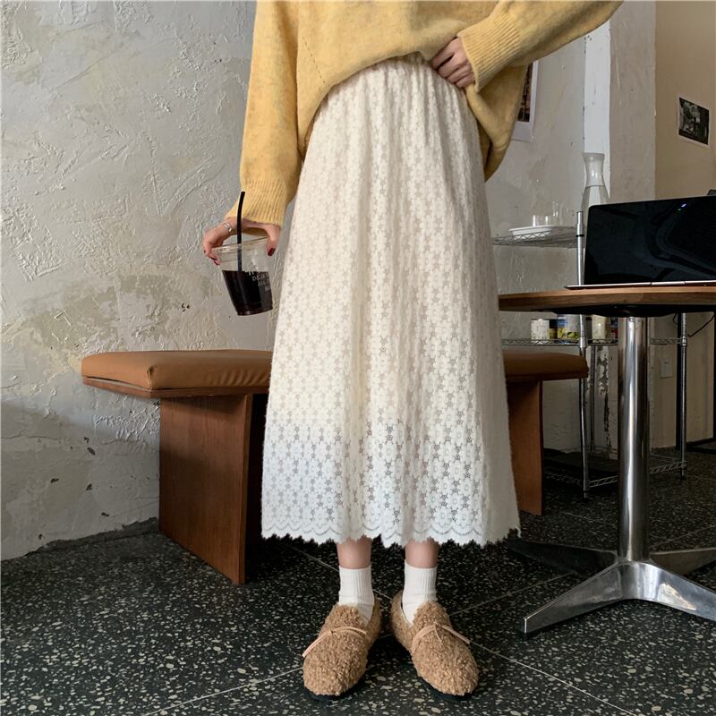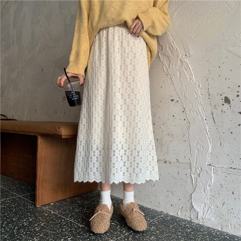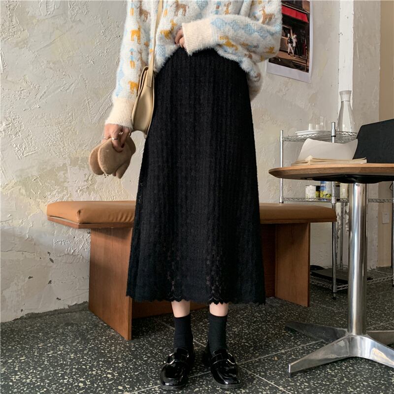 ニットスカート レディースオータムハイウェストウェストルーズレース 秋物 クレセントシティ21351614302