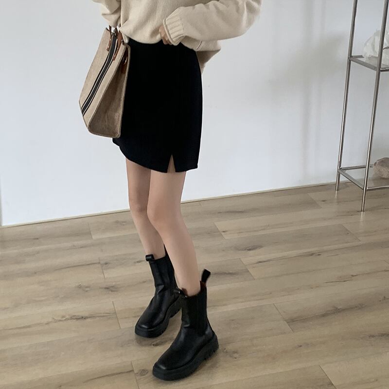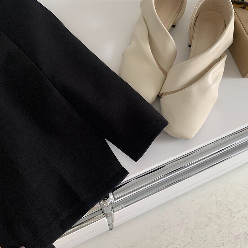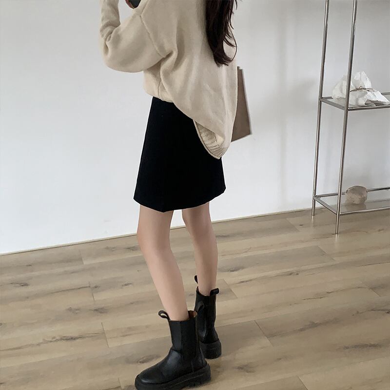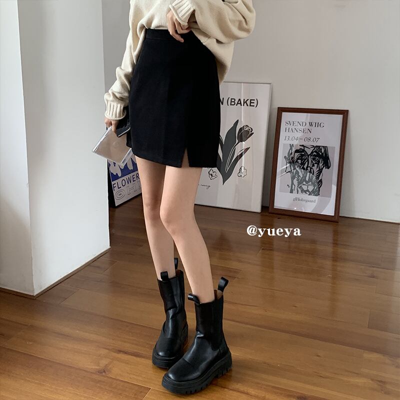 ブラックスカート オータムウィンターハイウェストウェスト薄手Aライン 秋物 冬物 クレセントシティ97670506489
