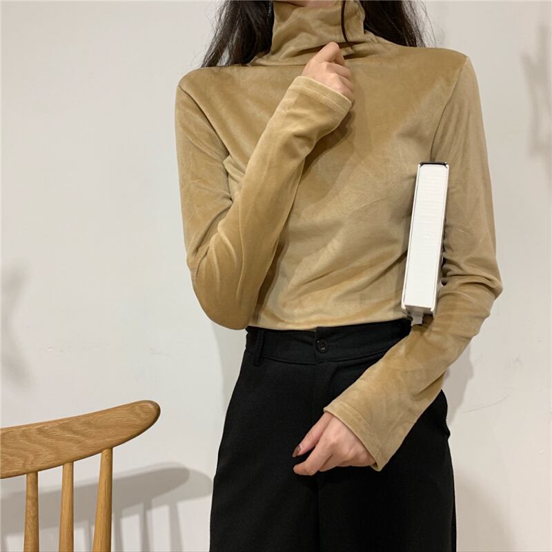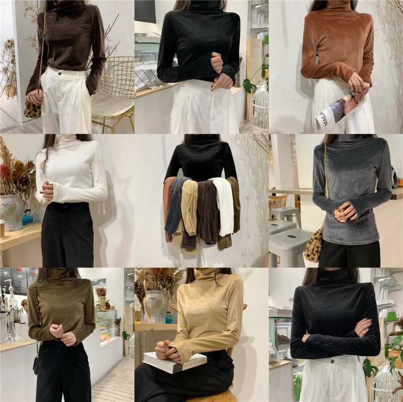 ゴールドベルベットカラーシャツ オータムウィンタースリム薄手Tシャツ トップス ロング 秋物 冬物 クレセントシティ28849341269