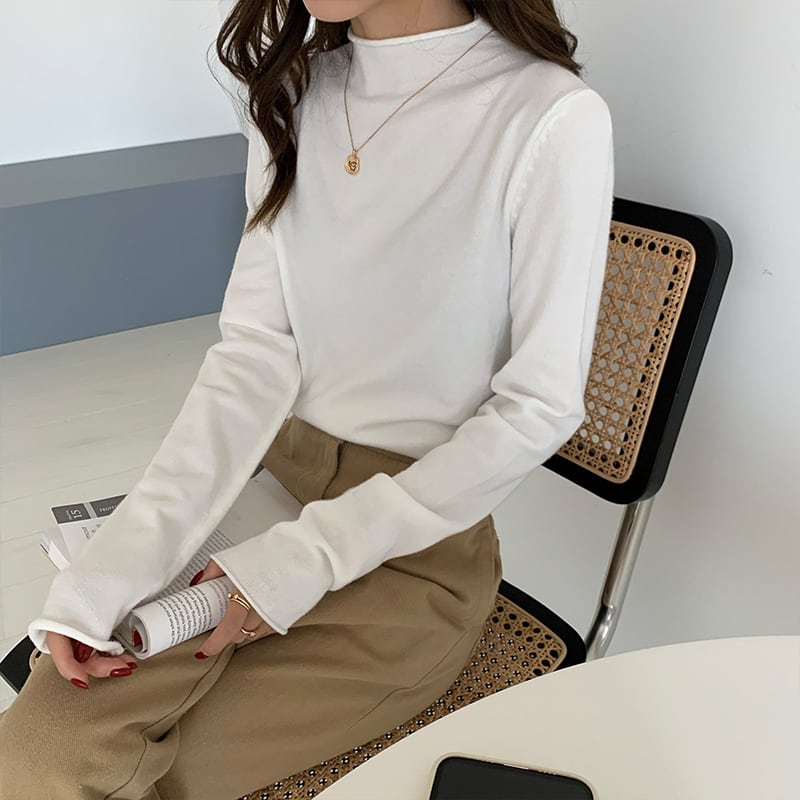 ニットシャツ レディースオータムウィンター薄手スリムソリッド カラートップス 長袖スリーブ ロング 秋物 冬物 ソリッドカラー クレセントシティ33185090522