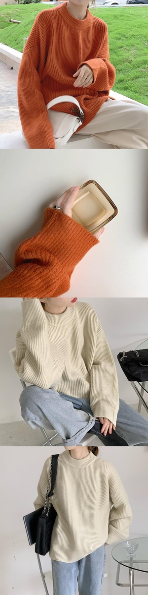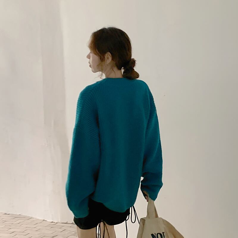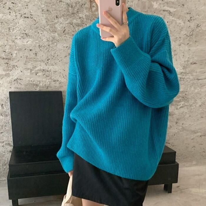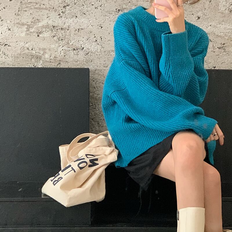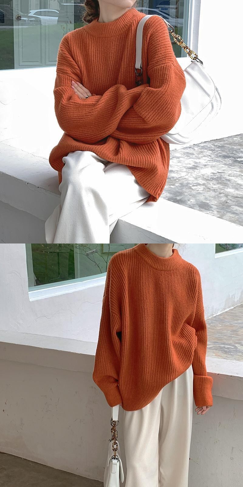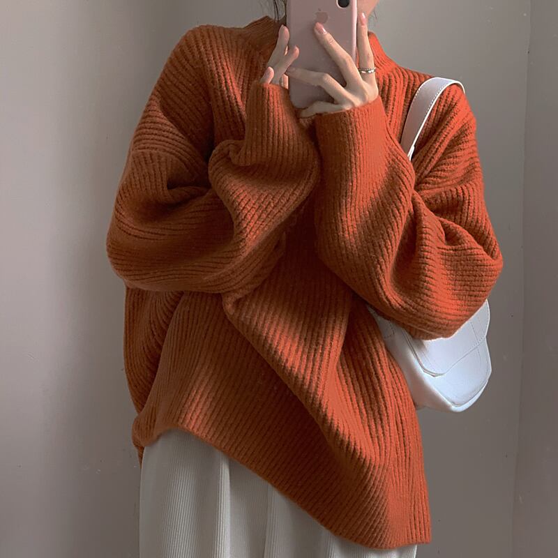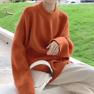 ソリッド カラーニットトップス オータムウィンタールーズラウンドネック長袖スリーブプルオーバー セーター ロング 秋物 冬物 Oネック ソリッドカラー クレセントシティ74251523714