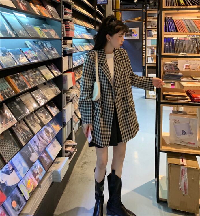 スプリングスタンダード格子柄ジャケット ルーズ レトロ 春物 クレセントシティ28176909273