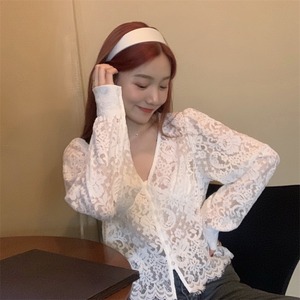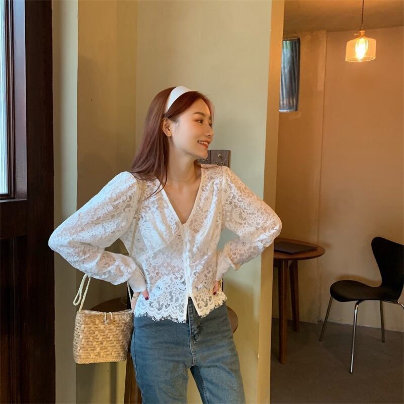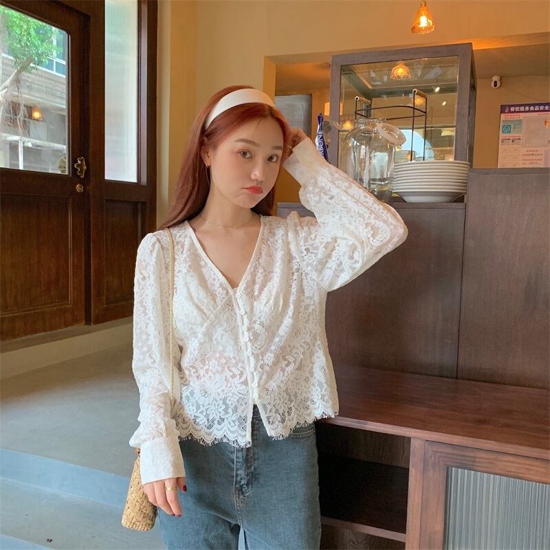 ホワイトレースシャツ レディースサマースリムVネックショートトップス 夏物 クレセントシティ6519916711