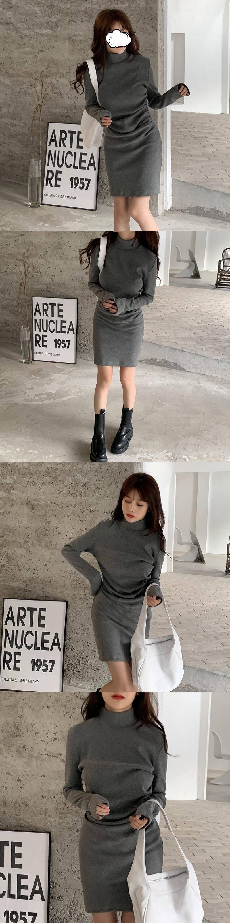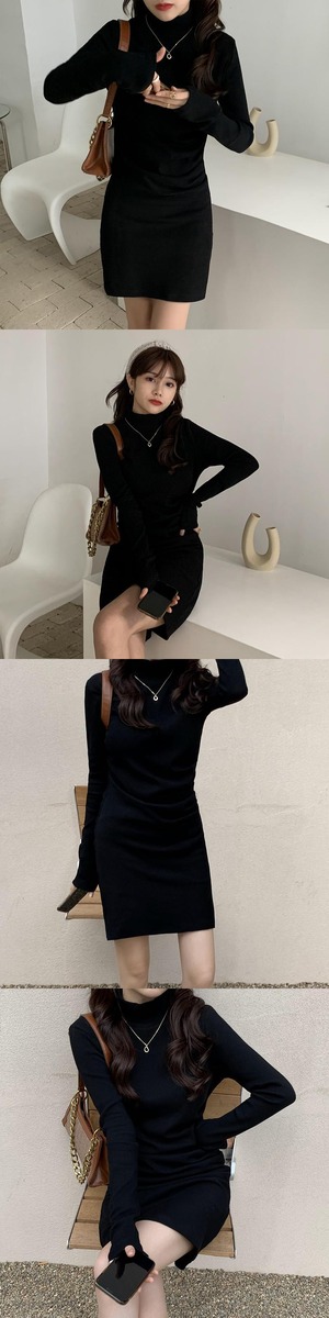 カラーニットドレス オータムウィンターウェストスリムスカート 秋物 冬物 クレセントシティ16340999359