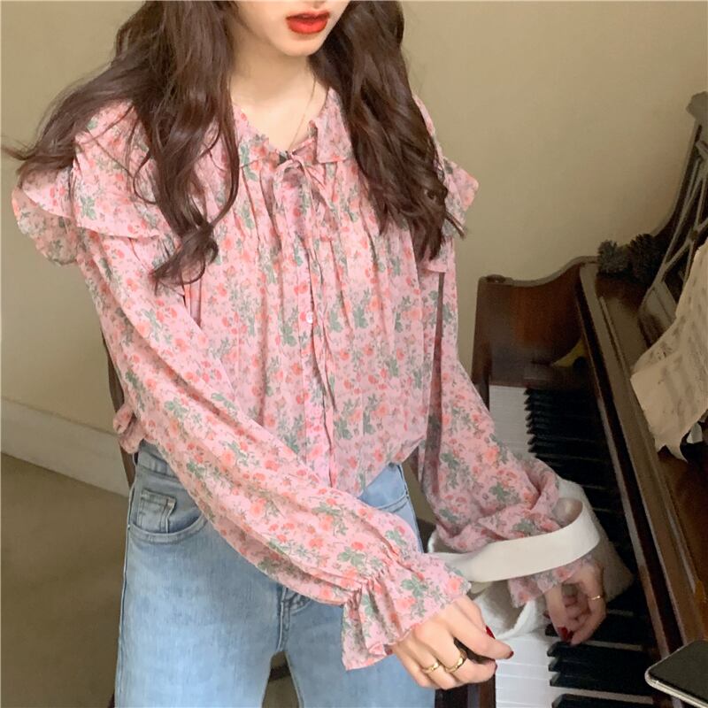 シフォンシャツ スプリングルーズフローラル ロング 春物 花柄 クレセントシティ12256791227