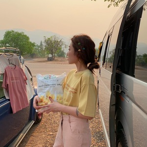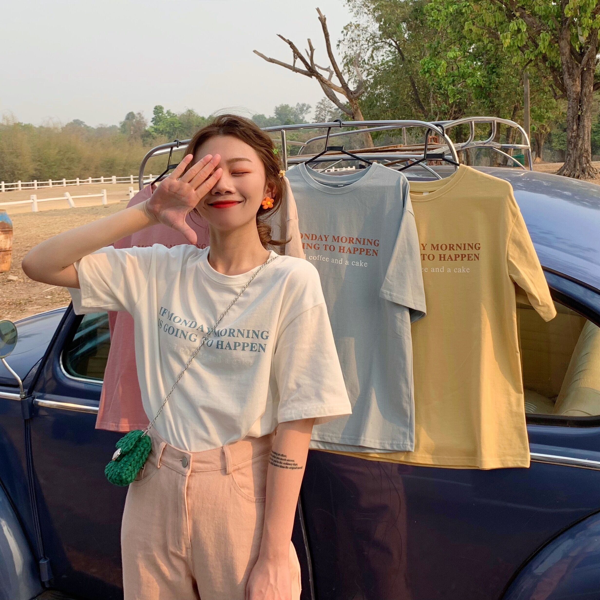 プリントTシャツ レディースルーズラウンドネックトップス サマー 夏物 Oネック クレセントシティ32885872705