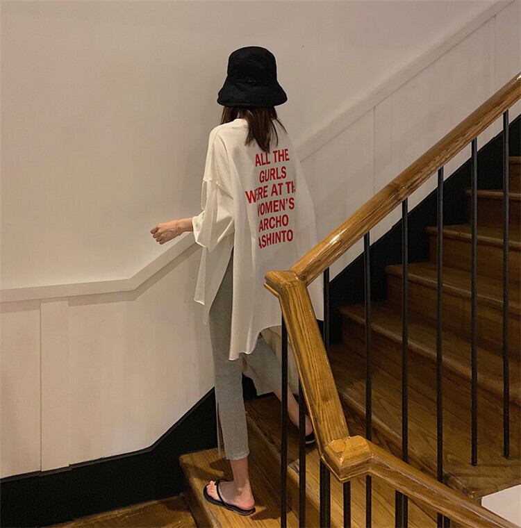 スプリングプリントホワイトTシャツ ハイウェストカジュアルパンツ 春物 クレセントシティ50334142462