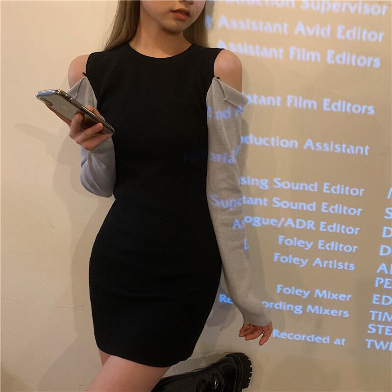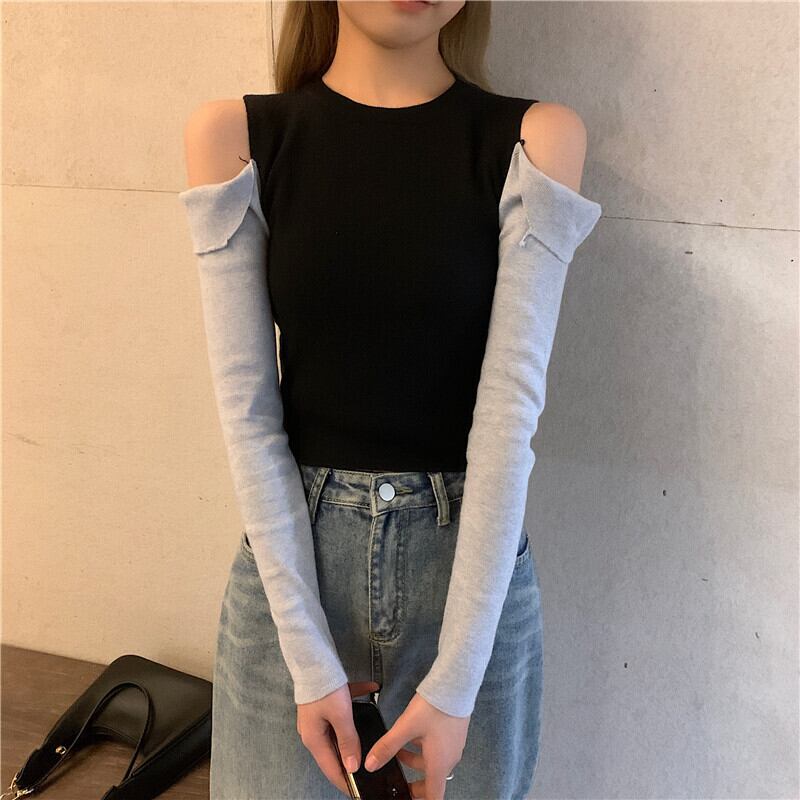 Tシャツ スプリングスタイルカラーニットトップス ロング 春物 オフショルダー クレセントシティ96633870892