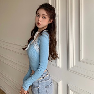 カラーVネックニットTシャツ スプリングスリム薄手ショートコート 春物 クレセントシティ6979452050