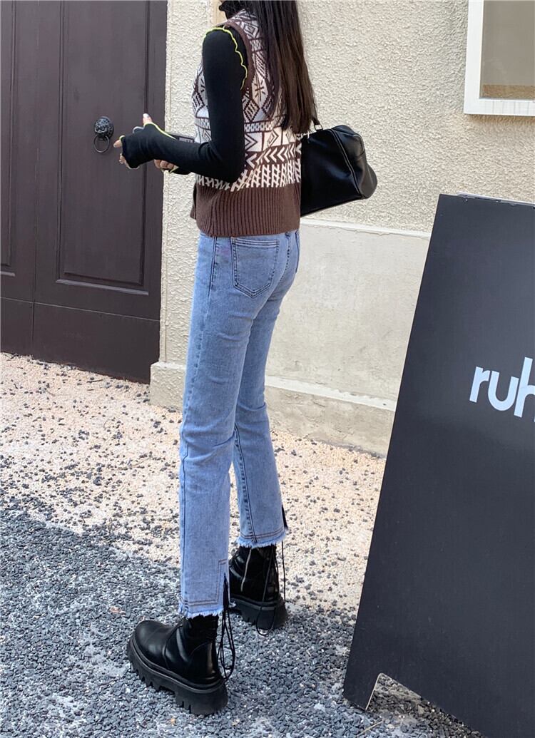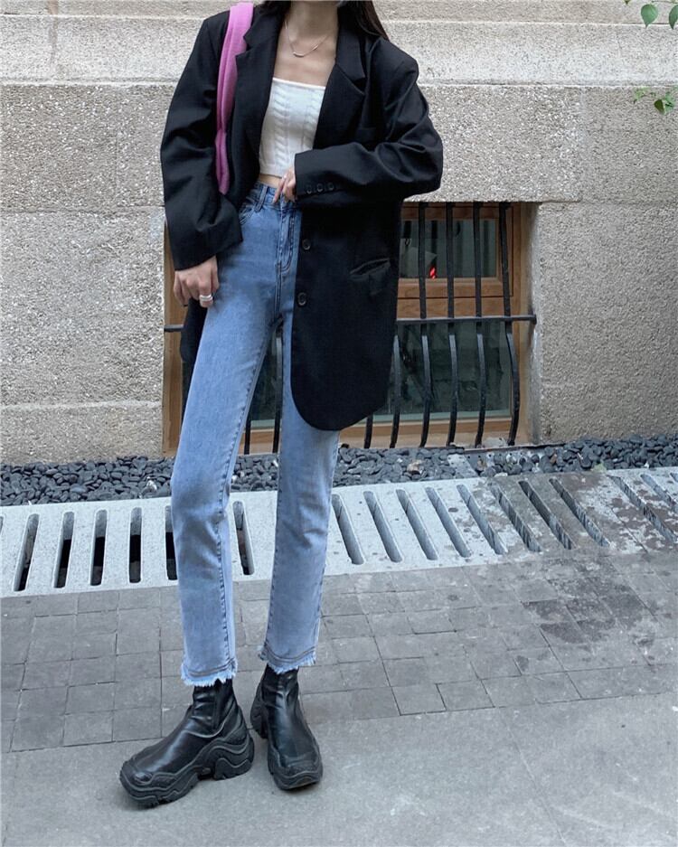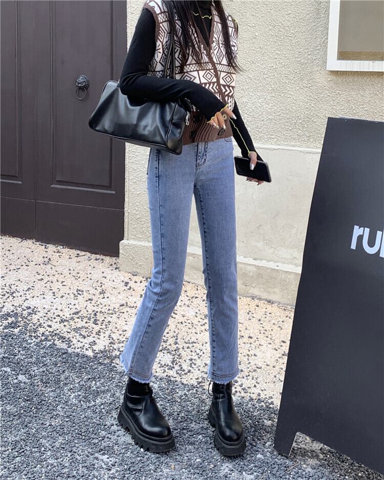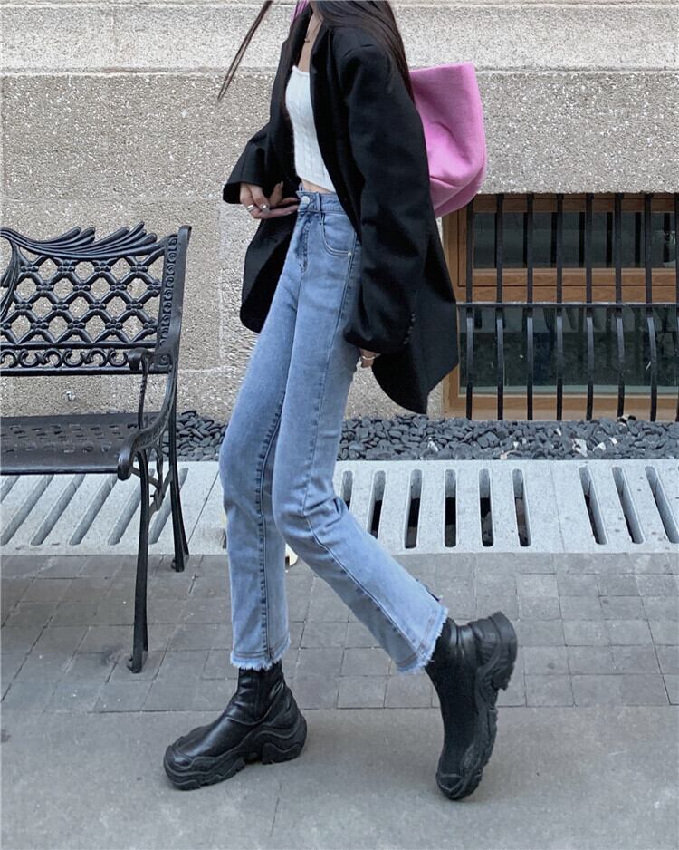 スタンダードハイウェストジーンズ レディースサマースリム薄手パンツ レトロ 夏物 クレセントシティ36925946524