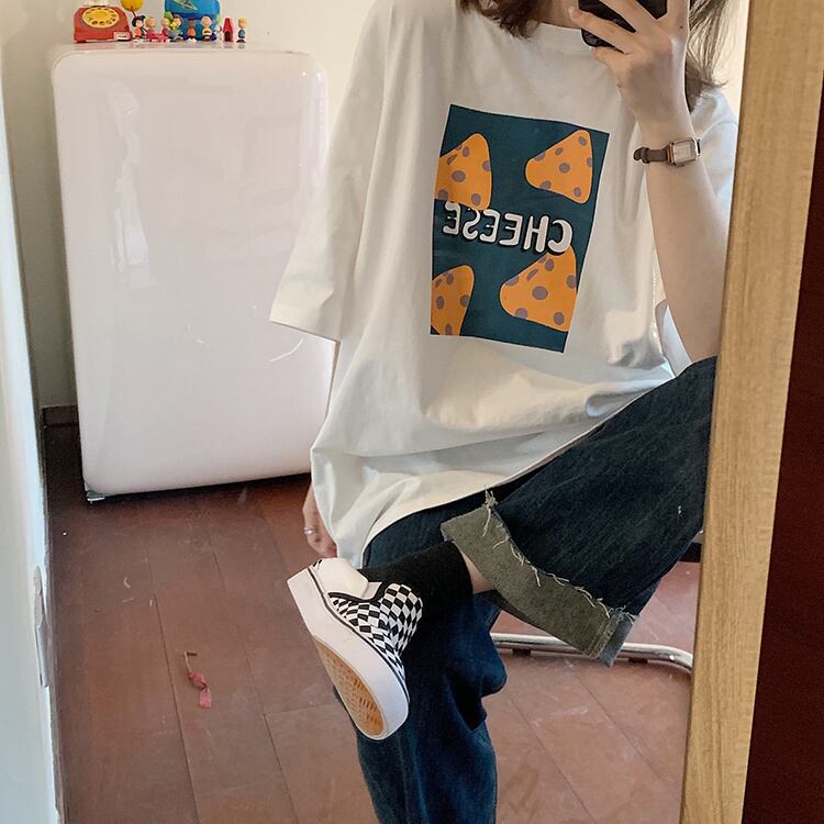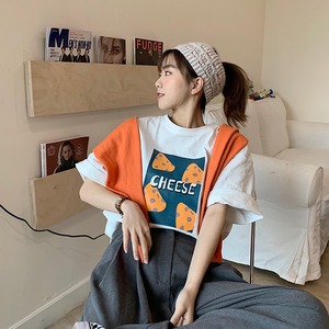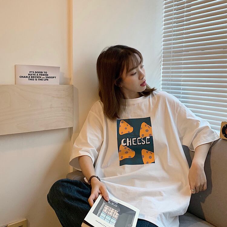 ホワイトTシャツ サマールーズプリント柄ロングプルオーバー トップス 夏物 クレセントシティ82561834393