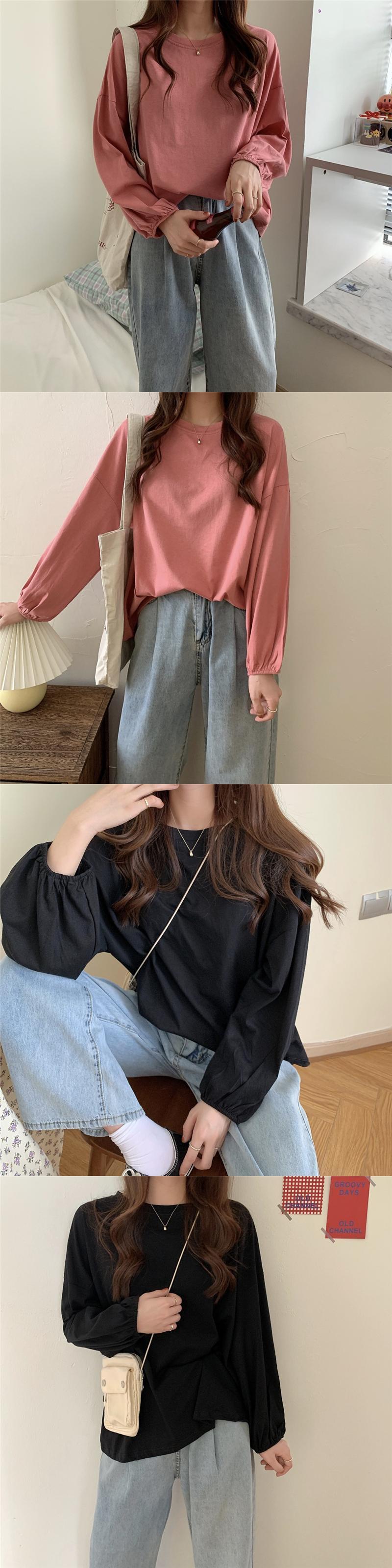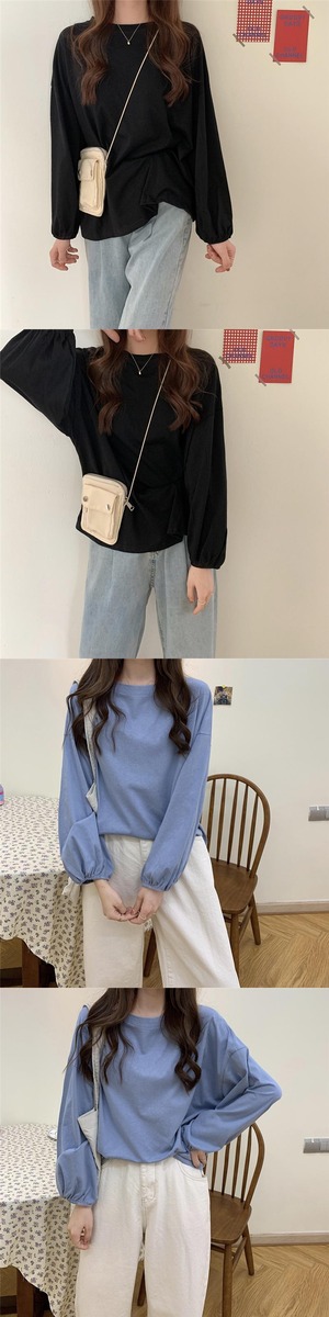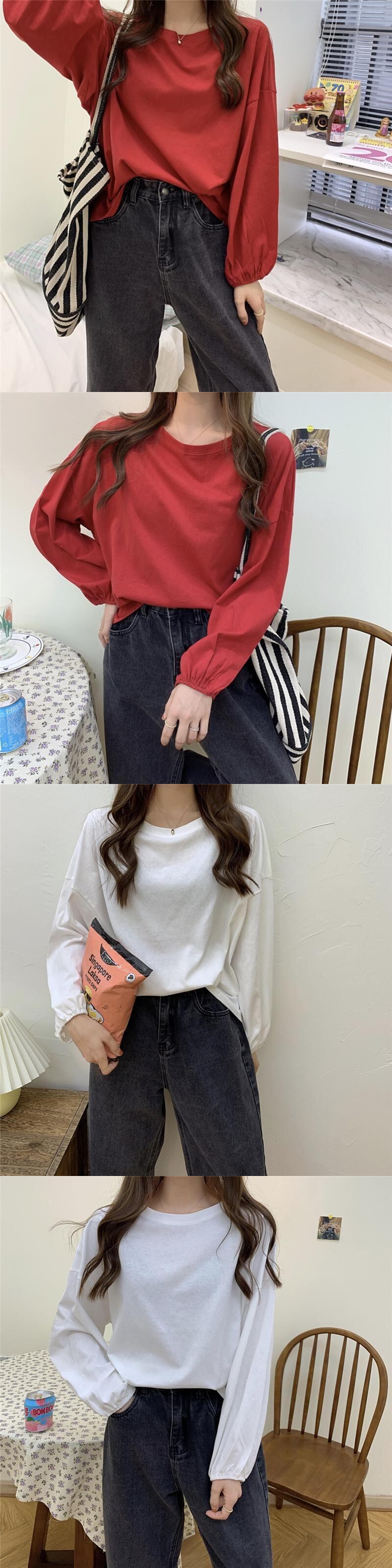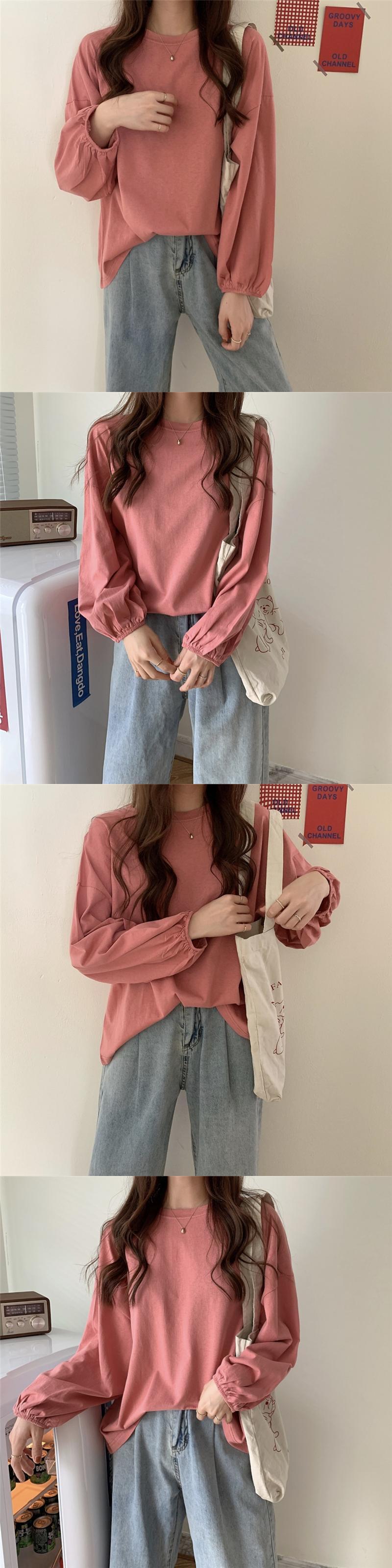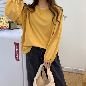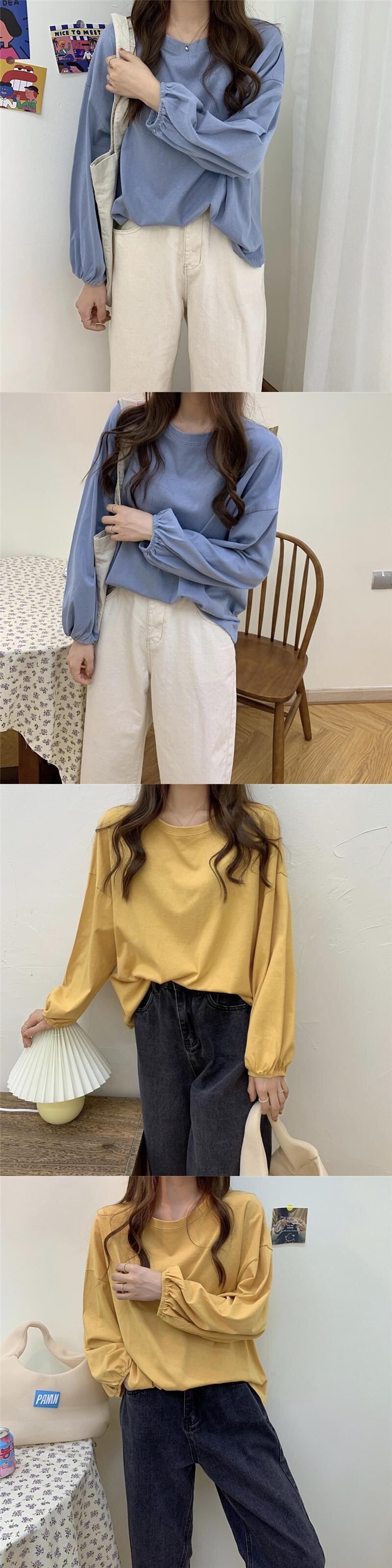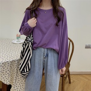 カラースリーブ長袖Tシャツ スプリングルーズラウンドネックトップス ロング ランタンスリーブ 春物 Oネック クレセントシティ88492707996