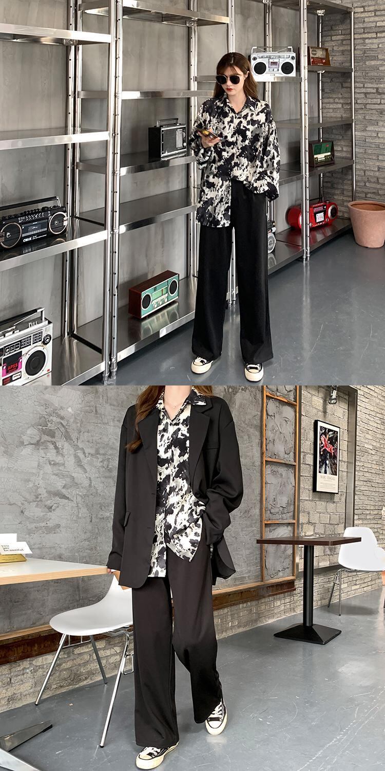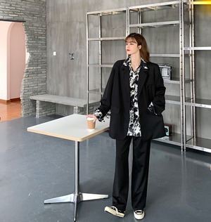 ルーズブラックジャケット シャツ トップス ロング クレセントシティ52033102668