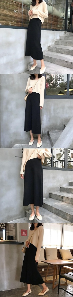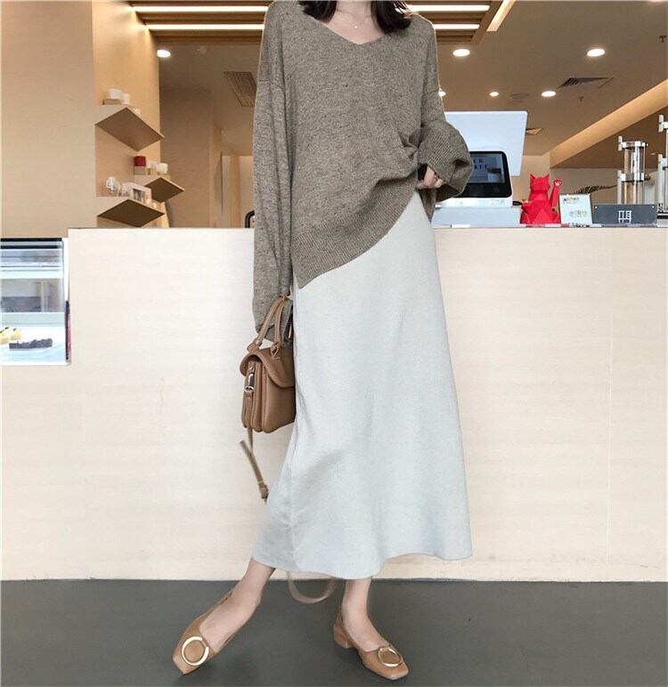 ニットスカート オータムルーズソリッド カラーハイウェストウェスト 秋物 ソリッドカラー クレセントシティ77282489144