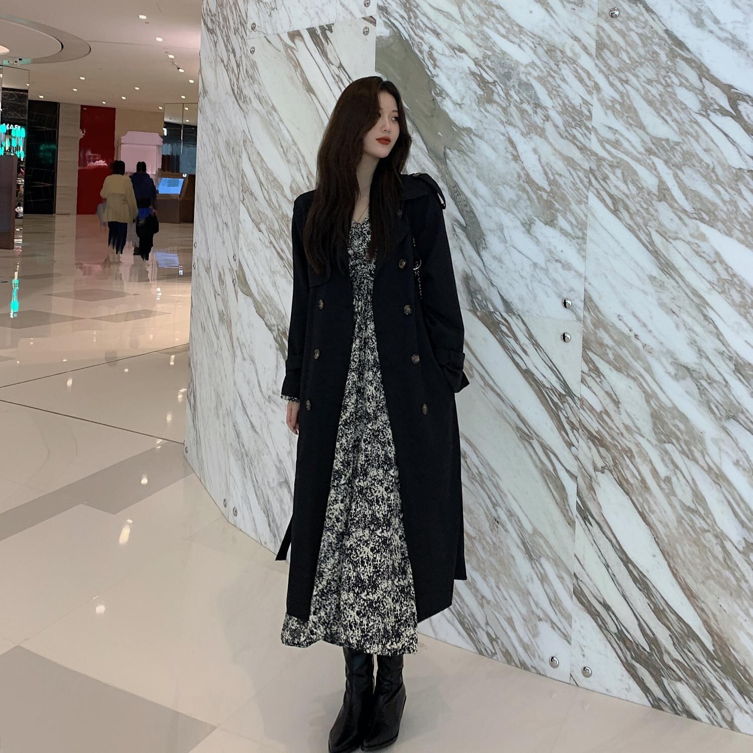 スタンダードVネックフローラルドレス スプリングルーズ薄手ハイウェストウェストロングスカート ニーハイ レトロ 春物 花柄 クレセントシティ91203776472
