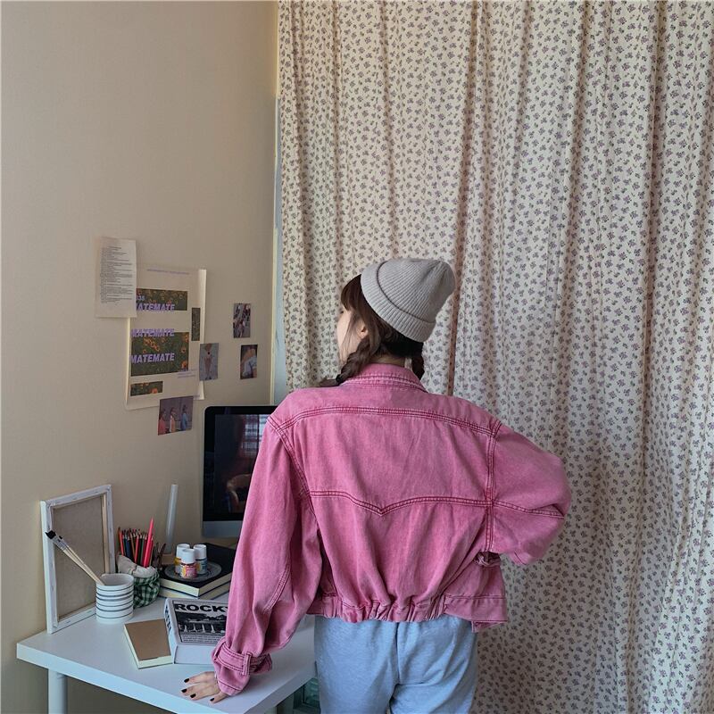 スタンダード刺繍ショートジャケット スプリングルーズウェストカジュアルスリーブトップス レトロ 春物 クレセントシティ98595778061