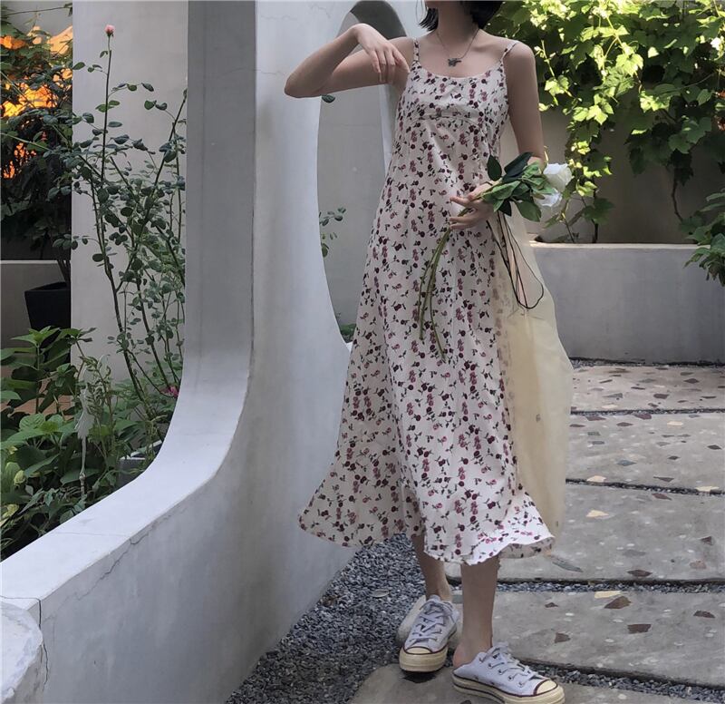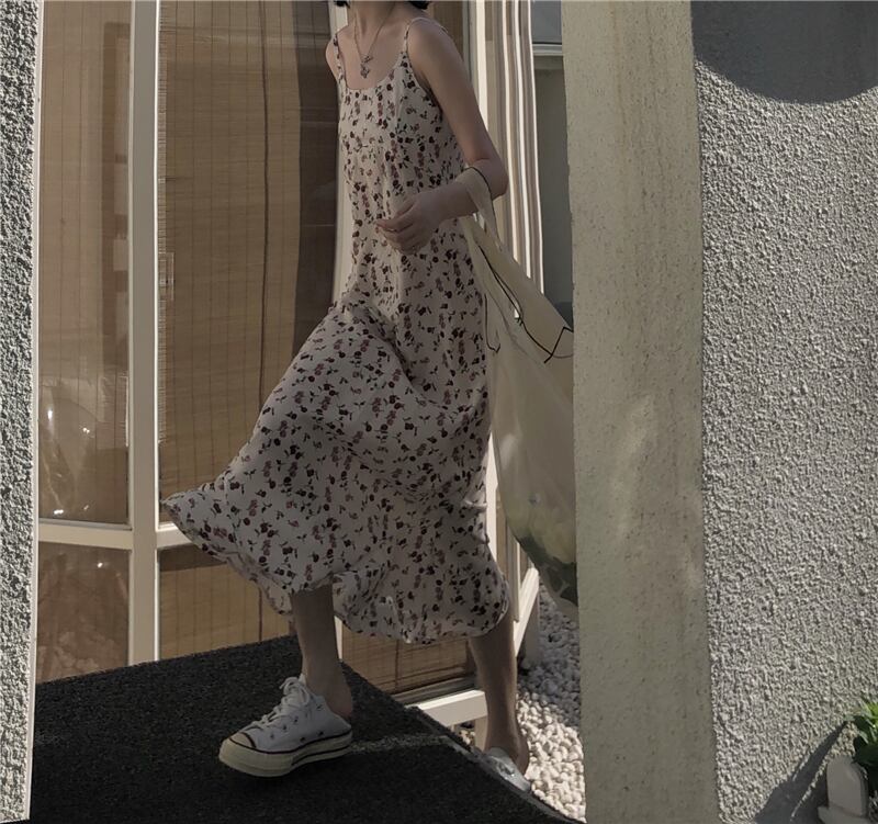 スタンダードシフォンフローラルドレス サマールーズロングスカート レトロ 夏物 花柄 クレセントシティ23449002015