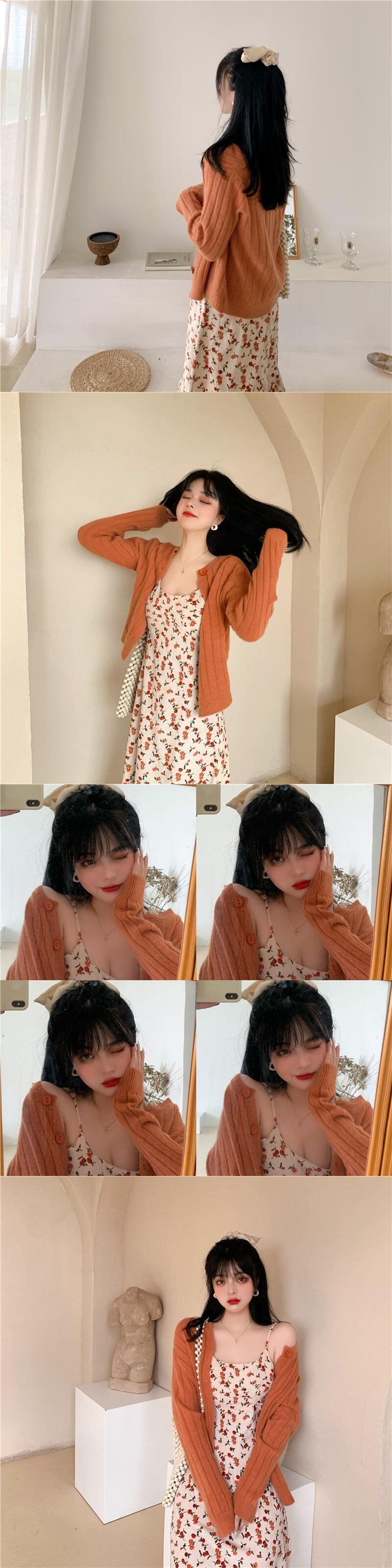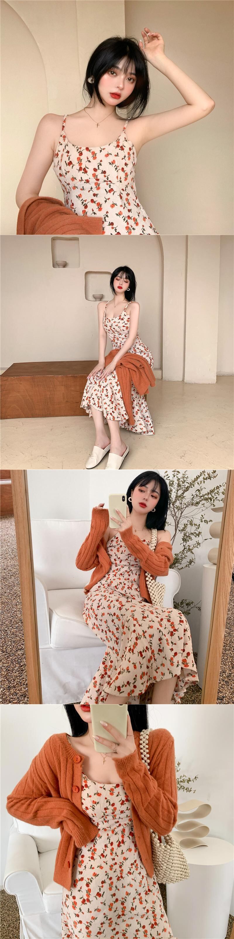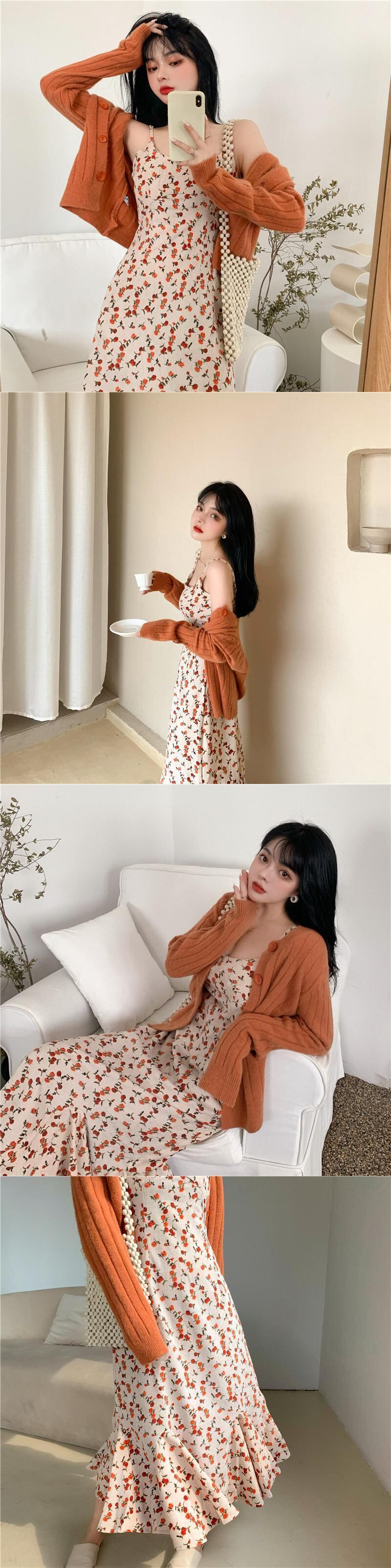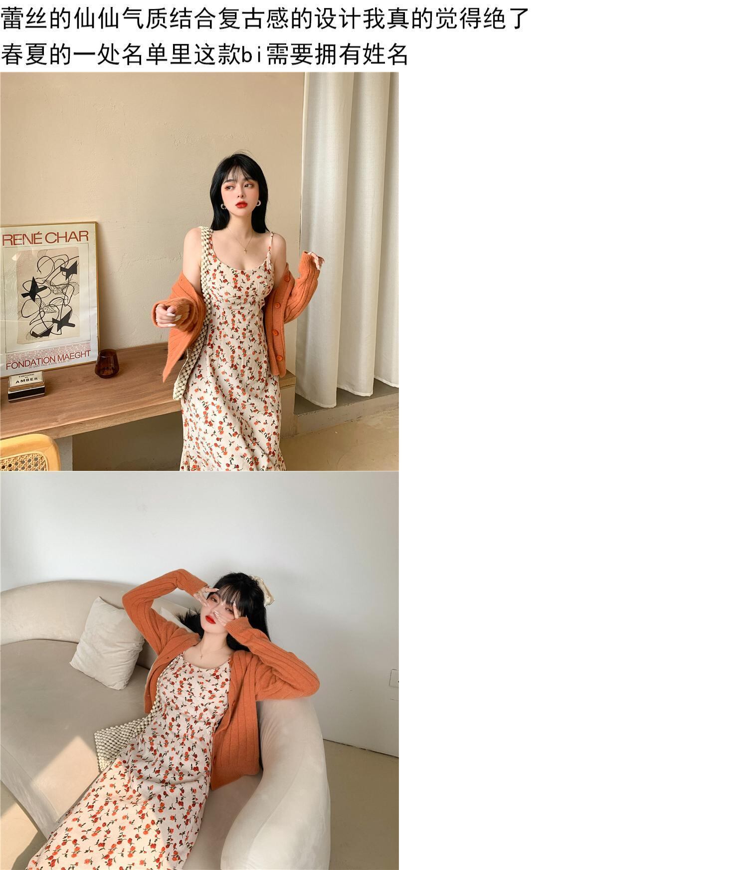 サマーオレンジニットカーディガンジャケット フローラルドレス 夏物 花柄 クレセントシティ35883187118
