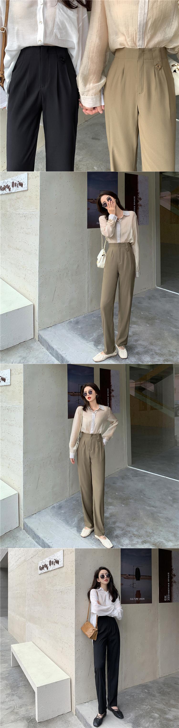 パンツ スプリングルーズカジュアルハイウェストウェスト薄手 春物 クレセントシティ48238675829