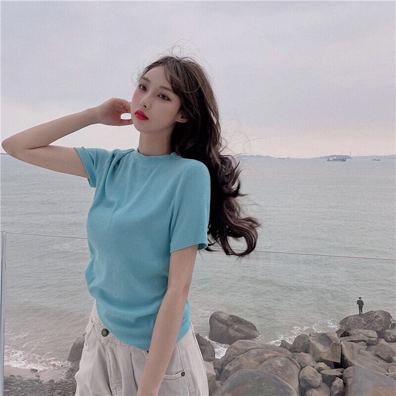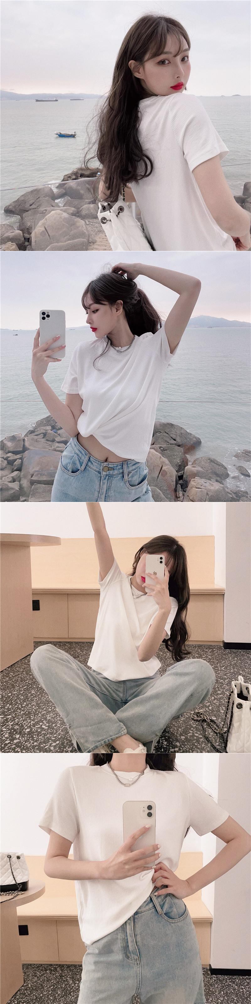 ホワイトニットTシャツ レディースサマースリム薄手トップス 夏物 クレセントシティ44309165311